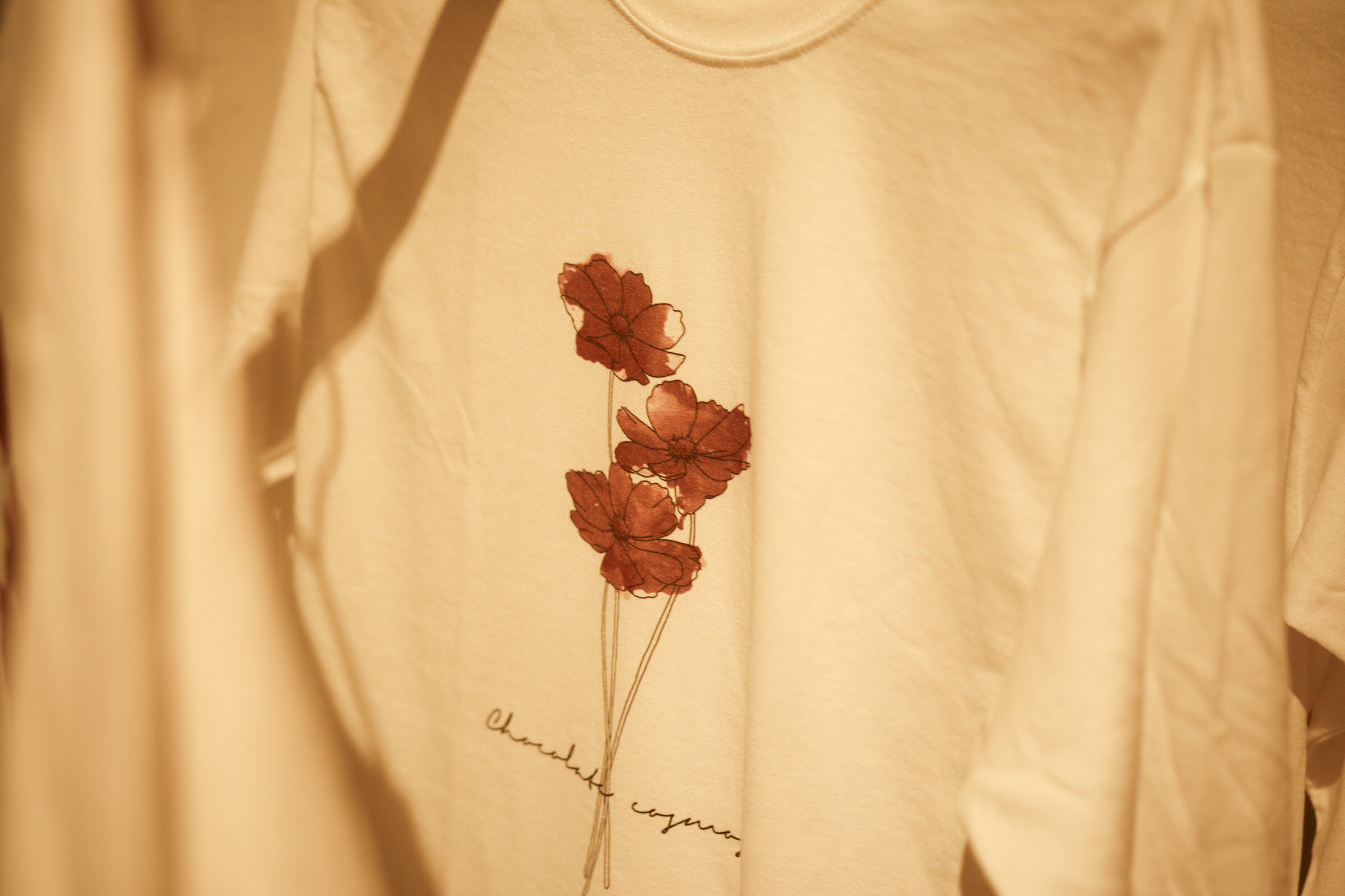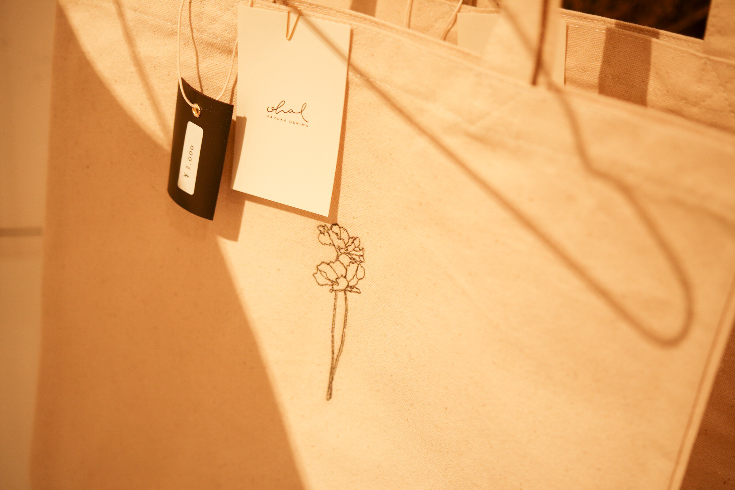 作品が目に付く会場で、気になったアイテムは厚めの布製トートバッグ、シンプルな見た目とは裏腹に繊細な刺繍がしっかり施されていた。新作のTシャツも販売、近々OneDropのECサイトでも展開されるとのこと。