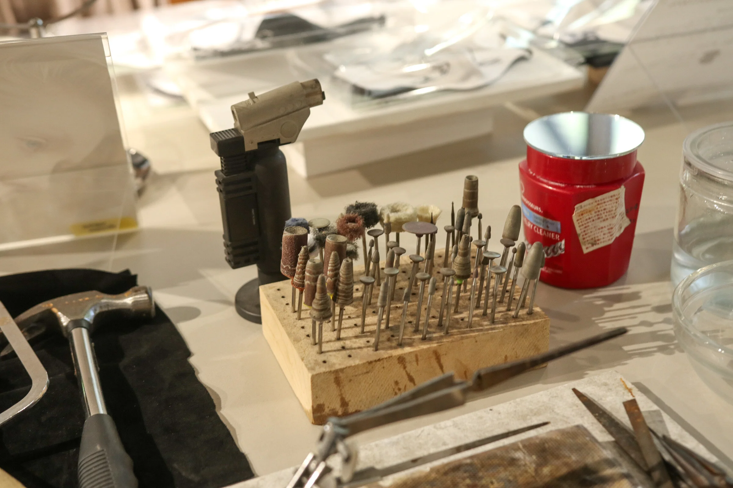 そうです。シルバーを磨くときに使う道具と、あとはトンカチなどですね。リングを作るときは、棒にシルバーを巻きつけて叩いて成形します。