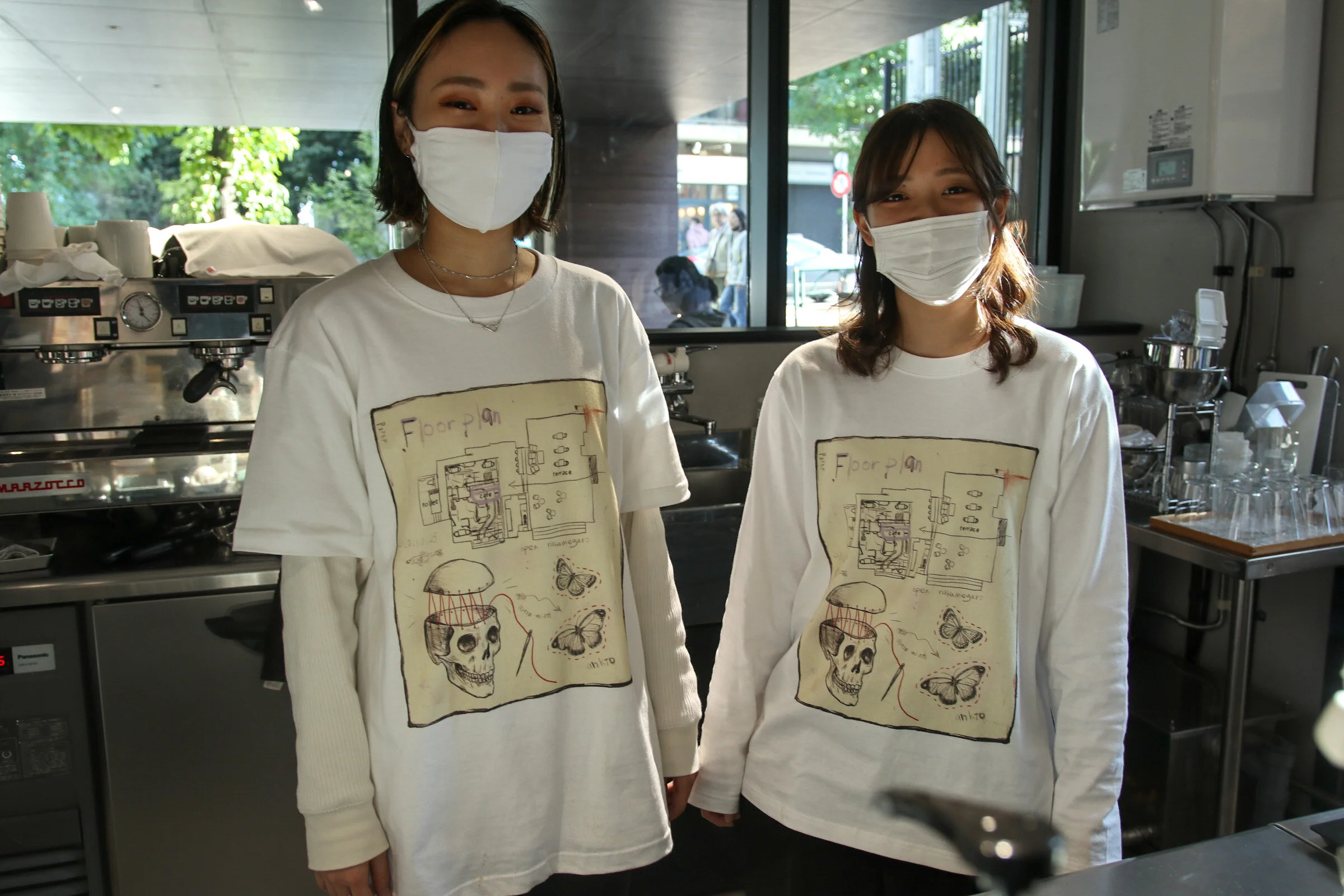 arrow mouth・矢口 捺海さんが、本イベントのためにOPEN NAKAMEGUROの内装をもとにデザインしてくれたTシャツ。