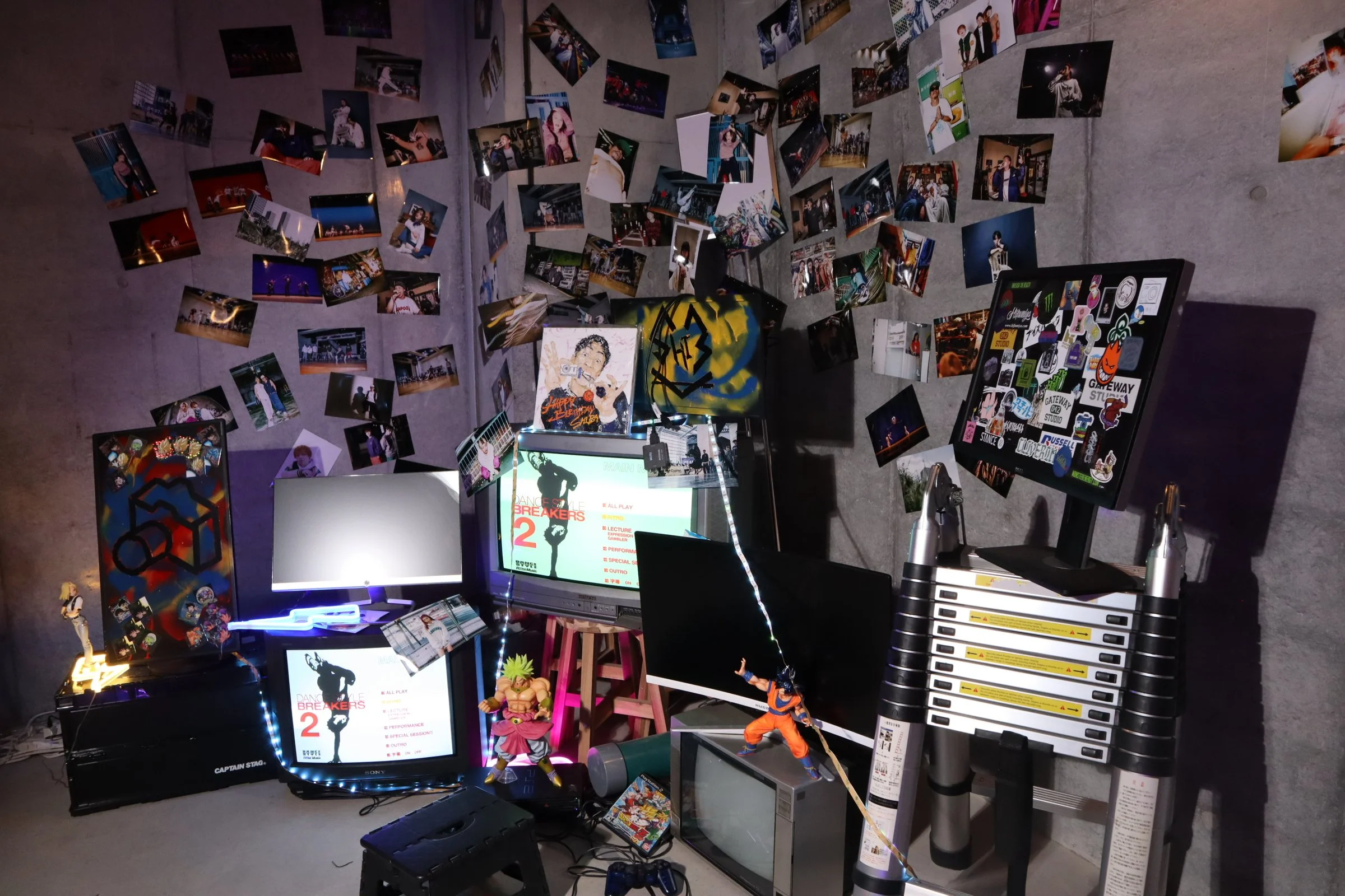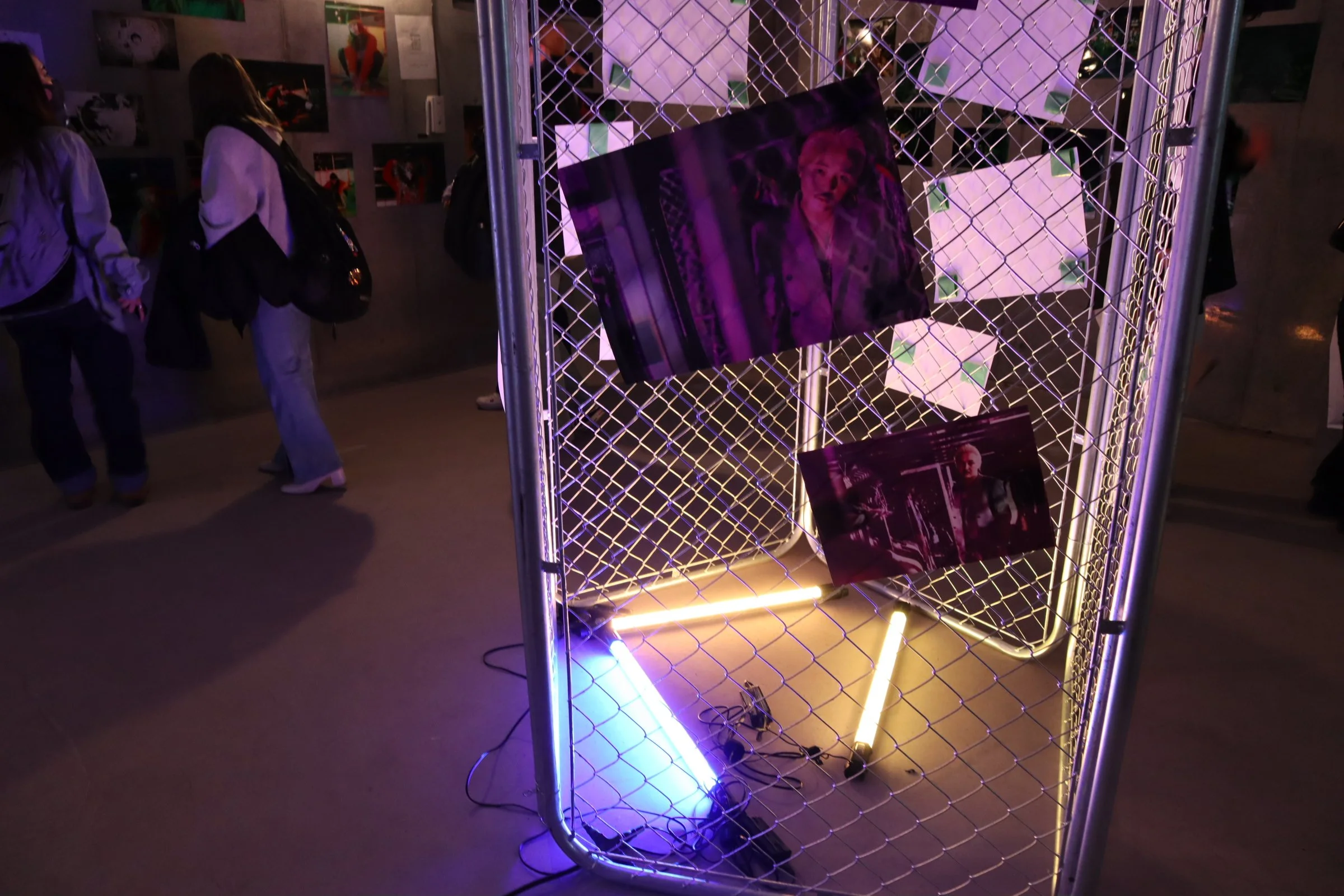 無数の写真が散りばめられた空間。紫やピンク、緑色のネオンが写真と壁を照らす、派手で迫力があり、かつ幻想的な世界が広がっていました。テーマに沿った11人のモデルさんをメインにした写真の展示がされました。