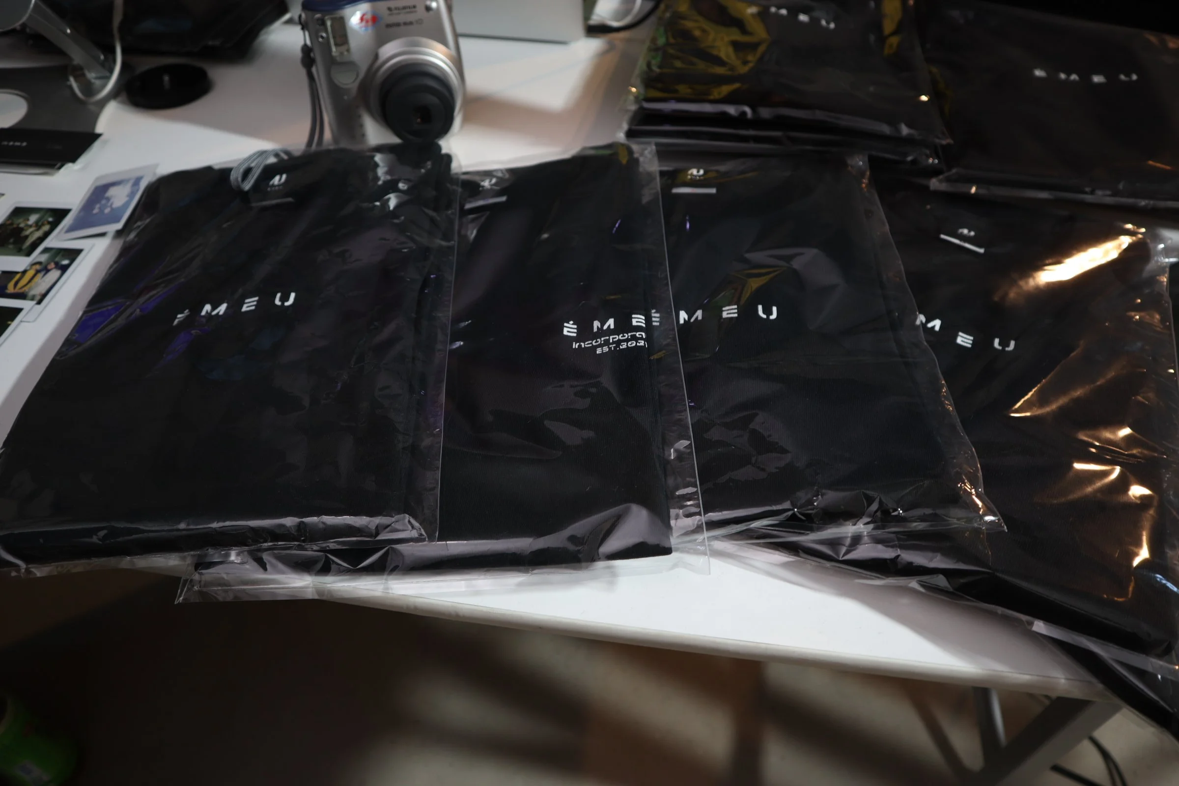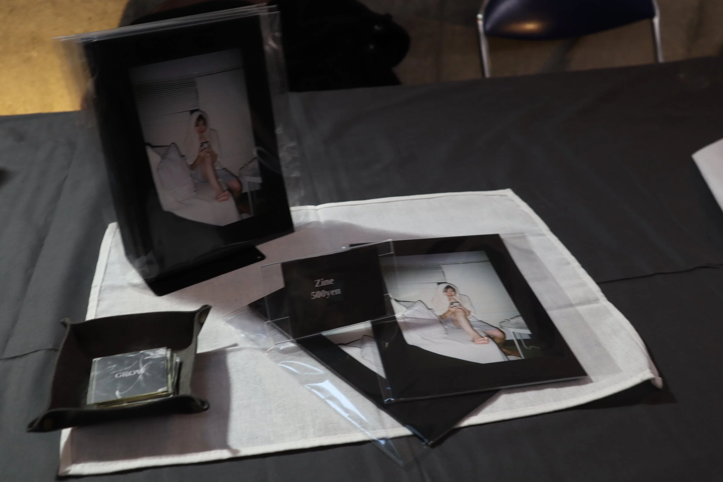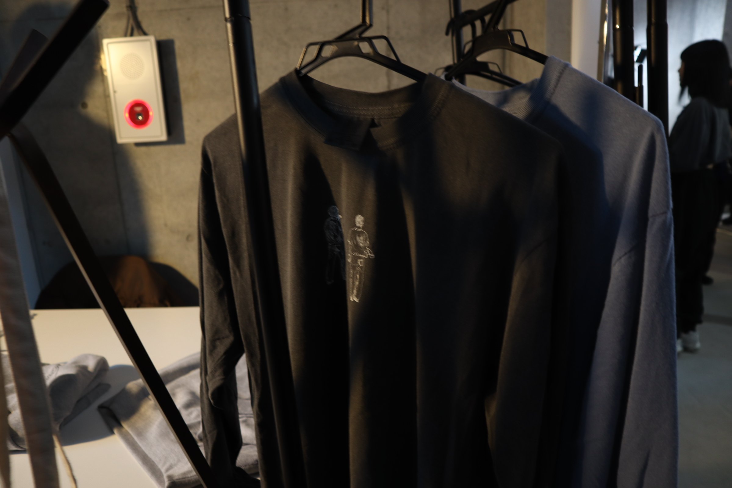 その奥ではÉ M E U さんが展示を展開。気に入った服を長く使ってもらいたいと、サステナブルな洋服を作っています。服の販売だけではなく、「没入できる映像」として、自身で制作した短編の映像をディスプレイで流すことで、映像と共に世界観を伝えられていました。その他にもチェキでお客さんと写真を撮ることで、お客さんも楽しんでいました。