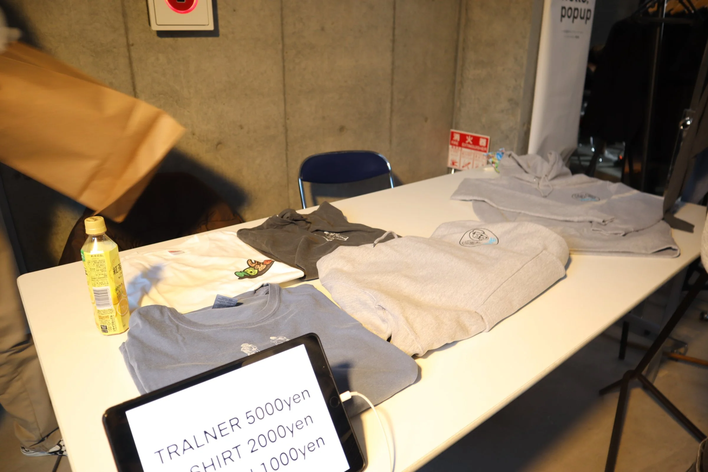 入り口側では、wollgeさんがグッズを販売。21AW SPECIAL COLLECTIONTとしてシャツや帽子を中心に、ステッカーなどの小物グッズが並んでいて、好評のため完売したグッズも多々ありました。