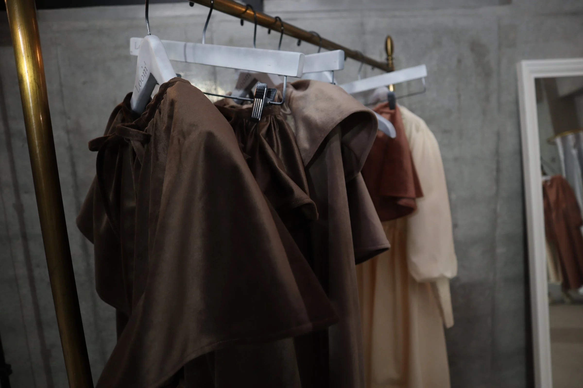 もこもことしたジャケット・スカートで、触ると柔らかくて暖かな素材が感じられました。着るとまるで羊のような気分になる、そんなジャケット・スカート。そして話を聞くと羊をモチーフにして洋服を作っているとのこと。さらに一着一着に名前をつけているようで、思いが込められているのが伝わってきます。