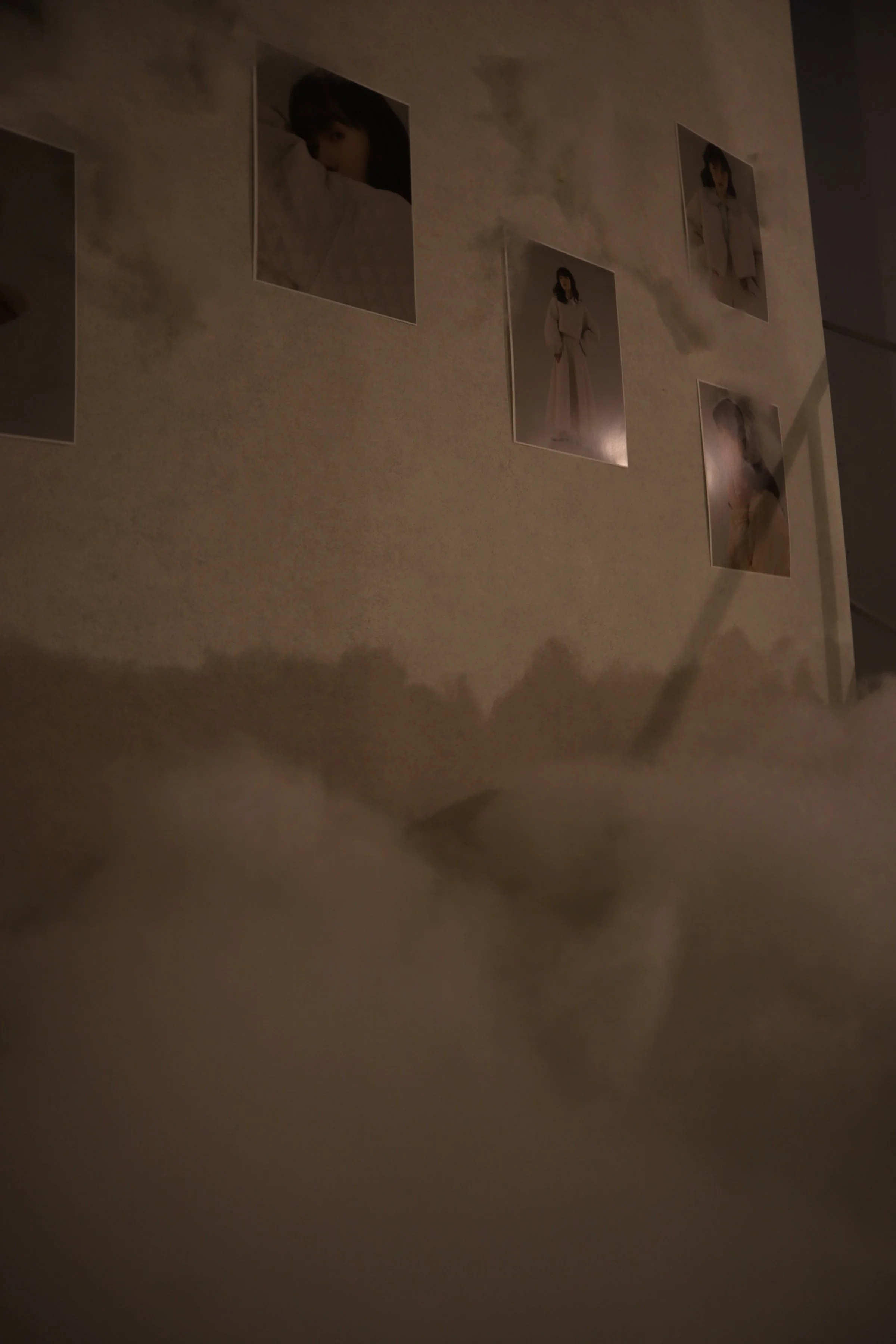 元々Loom⁴ のロゴには「浴室」が描かれているのですが、ふわふわとした綿が壁に貼り付けられた地下の空間にいると、まるで泡の湧き出た浴槽に浸かっているようで、体温がじわりと暖かくなりふわっとしたような、そんな不思議な感覚になりました。