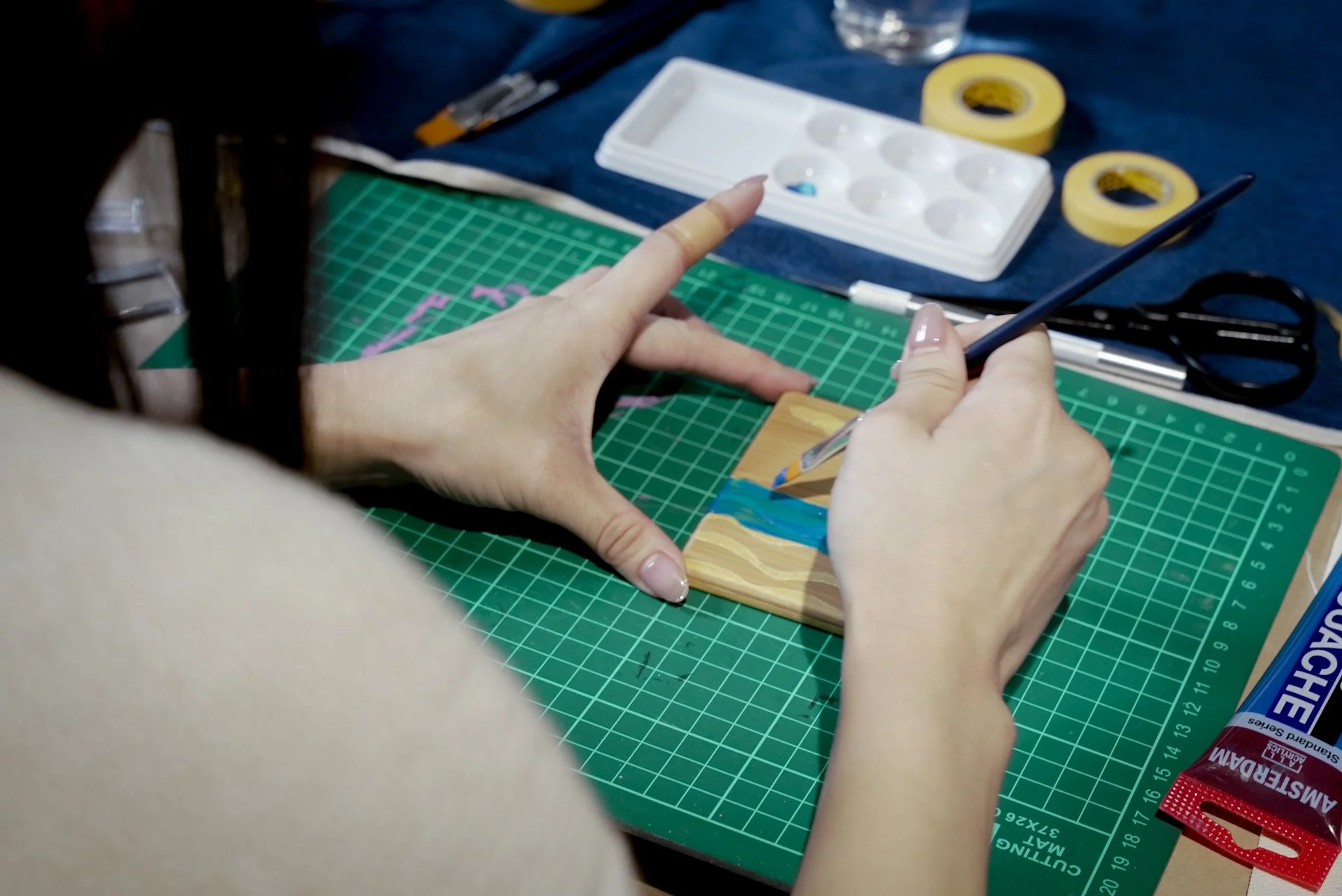 時にアーティストにアドバイスをもらいながら”自分だけの”コースター作りに没頭。