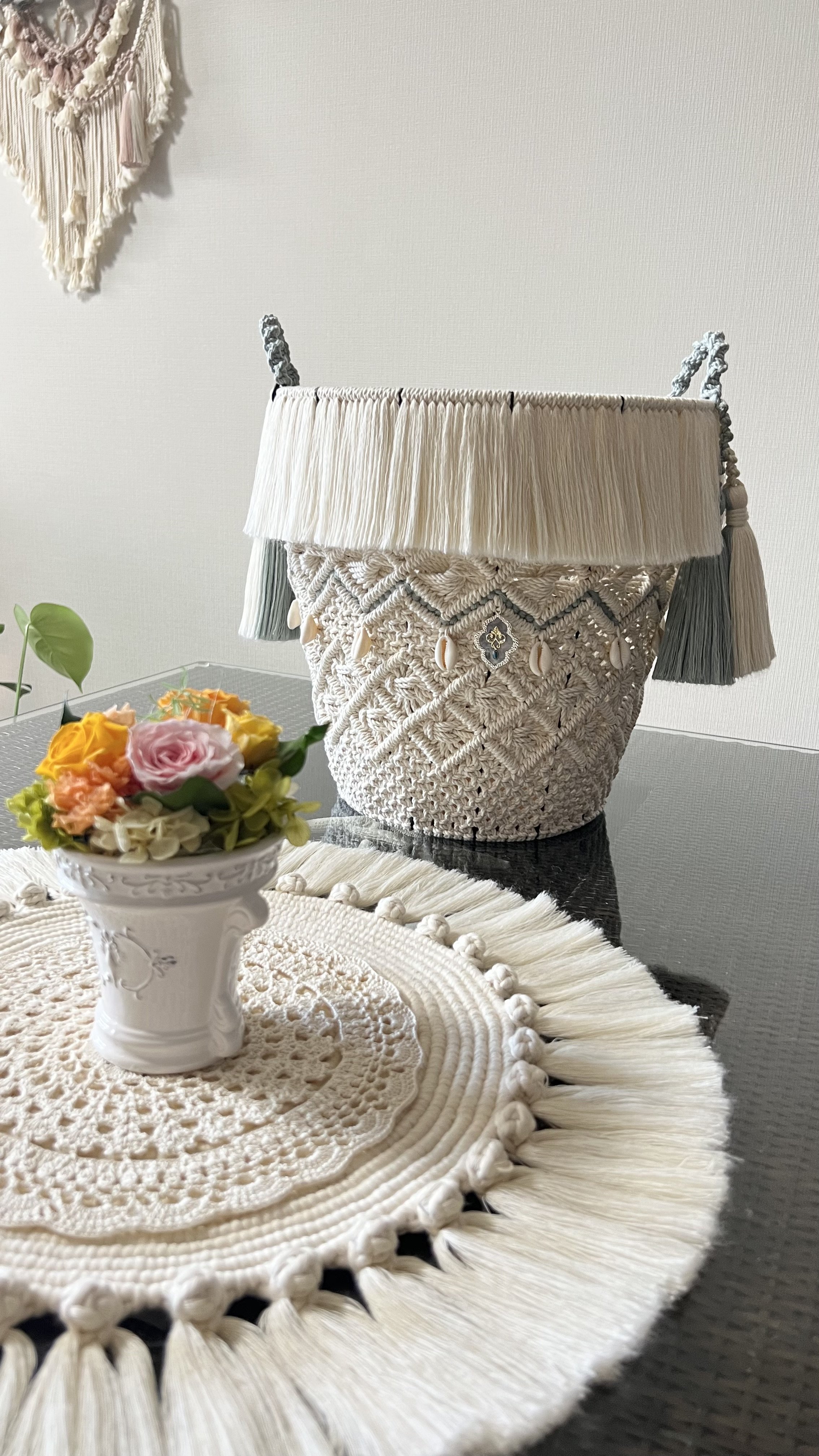 マクラメでタペストリーやインテリア雑貨、カーテンなどを制作販売しています。その中でもタペストリーは作品ごとにテーマがあり、イメージや想いを表現し制作しています。こだわりのデザインはラインにこだわることで美しい作品に仕上げています。ショップインテリアとしてお迎えいただけるような存在感のある作品もお作りしています。大切な空間作りのお手伝いはもちろんのこと、大切な方へのプレゼントにそしてショップのインテリアとしてお迎えするお客様への想いを込めて【糸を繋ぐ「Lokahi(絆そして友愛)」】がコンセプト