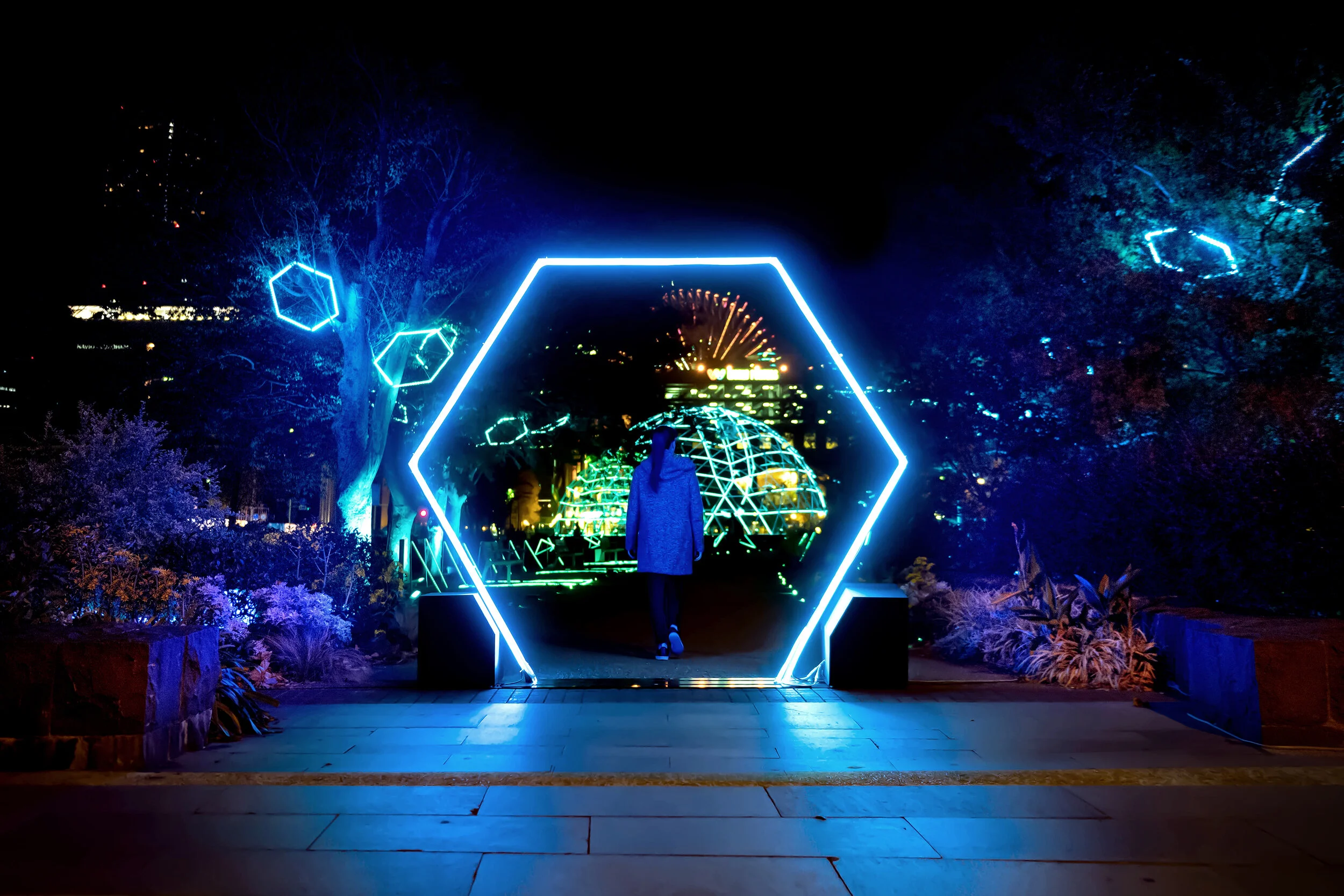 横浜都心部臨海部に設置されたPORTALをくぐり抜けると、ヨルノヨは光と音であなたと呼応します。あなたと誰かが残した光の痕跡は、公式ホームページで確認できます。PORTALの設置場所は、横浜の景色とともに写真撮影ができるフォトスポットとしてもお楽しみいただけます。