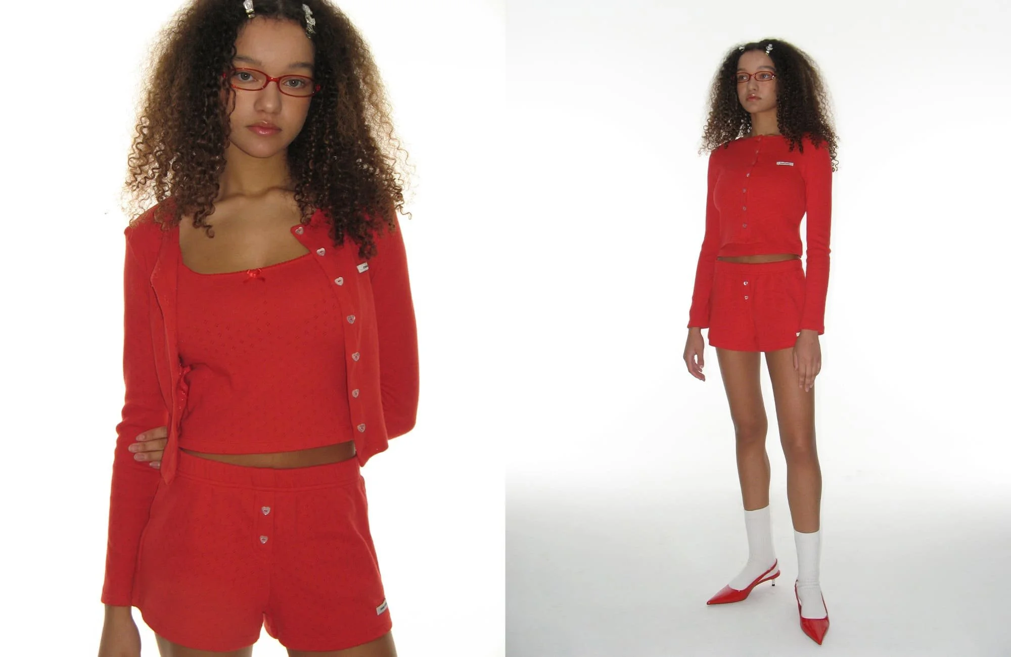 HEART BUTTON EYELET SHORTS_RED