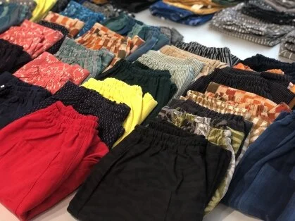 MONPEを着心地の良い日常着「KATA(型)」という考え方に踏襲し、筑後地域の伝統的な織物である久留米絣を主軸にこのKATA(型)を使って色々な織物産地の生地で作られた「コラボもんペ」が販売されます。