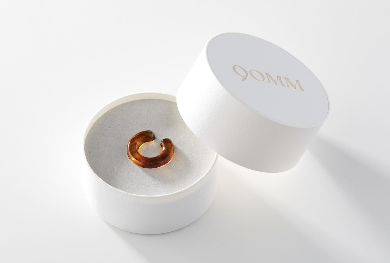 『90MM』は樹脂由来の宝石【琥珀】と樹木由来の宝石【ジェット】を使用した、植物由来のジュエリーに特化したブランドとして、2022年にリングやピアスなど計4型を発表。銀座三越や西武渋谷店での受注販売会を開催してまいりました。