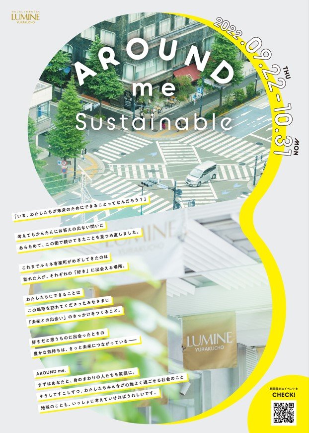 株式会社ルミネが運営するルミネ有楽町では、9月22日(木)から10月31日(月)まで、サステナブルをテーマにした「AROUND me Sustainable」を開催いたします。お客さまもショップスタッフも一緒にサステナブルを感じ、考える、みんなが新しい一歩を踏み出す秋に。私たちの暮らしの中にあるサステナブルを発見できるようなイベントをご用意いたしました。