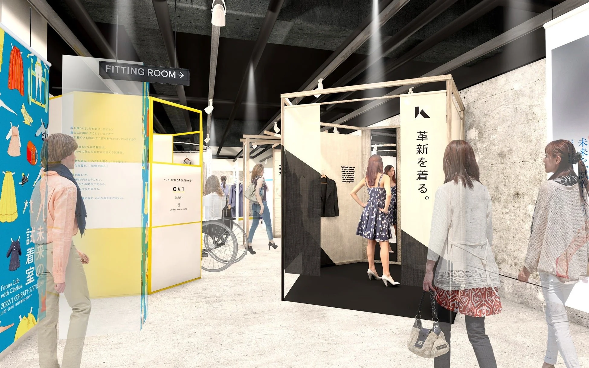 1. 未来へ繋がる「衣服の可能性」を手にとって体験できる「試着室」型展示