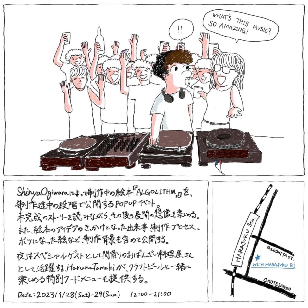 ShinyaOgiwaraによって制作中の絵本『algorithm』を、制作途中段階で公開するPOPUPイベント。
