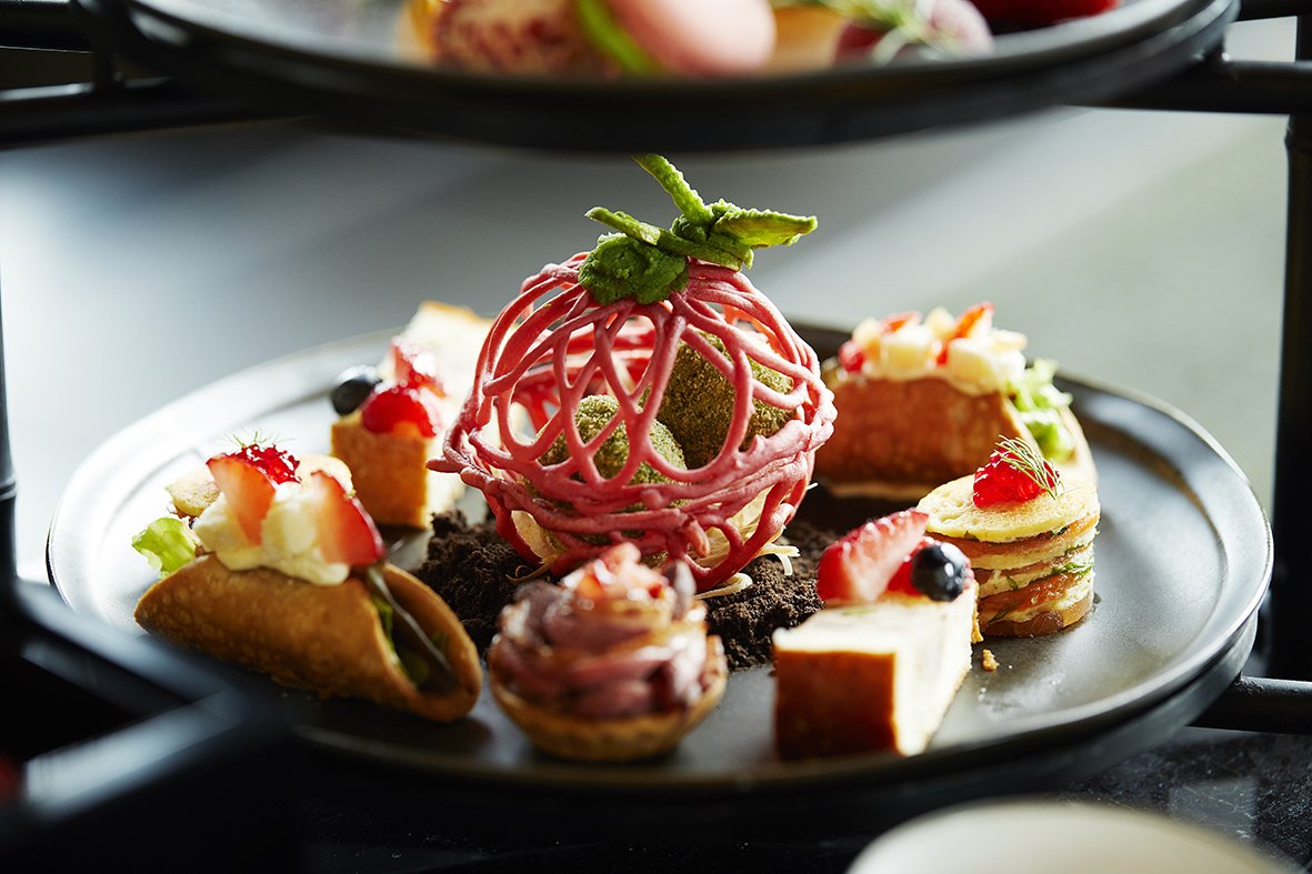 フレッシュな苺がアマン東京オリジナルの黒竹三段トレーに映える大人のアフタヌーンティーとともに、春の訪れを感じるひとときをお過ごしください。