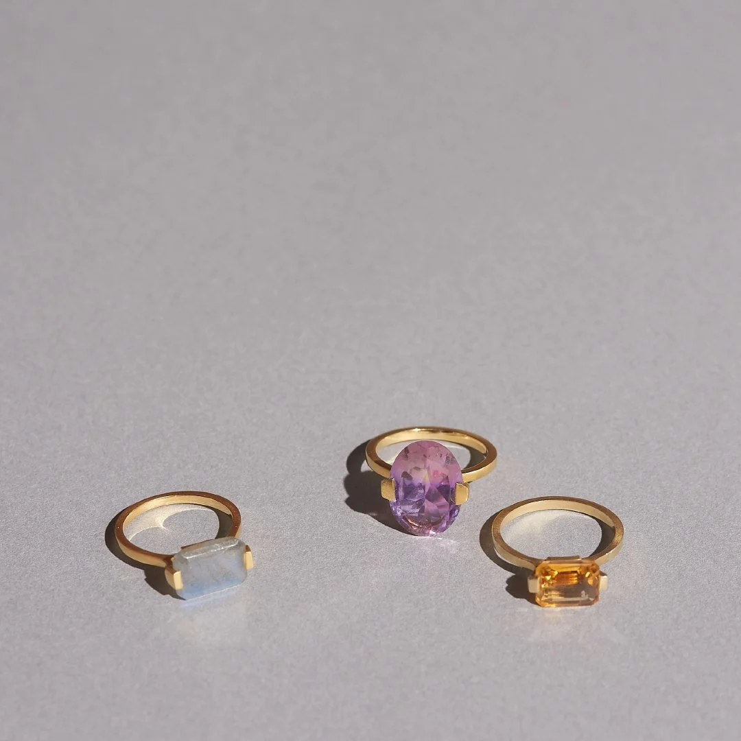 “ancient” rectangle labradolite ring / 14,300yen (with tax) “ancient” oval ametrine ring / 16,500yen (with tax) “ancient” rectangle citrine ring / 13,200yen (with tax)