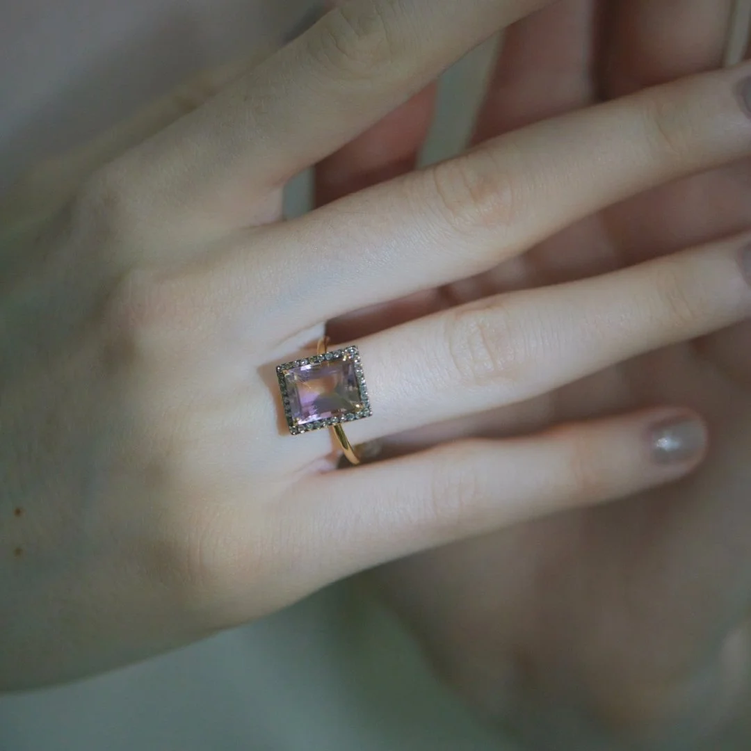 “elafonisi” rectangle ametrine pave diamond ring / 31,900yen (with tax)