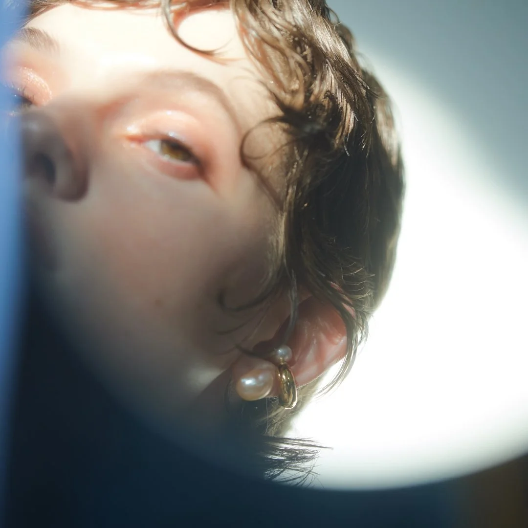 コロンと丸いシェイプのバロックパールを、ボリュームのある有機的なシェイプのイヤーカフに添えました。