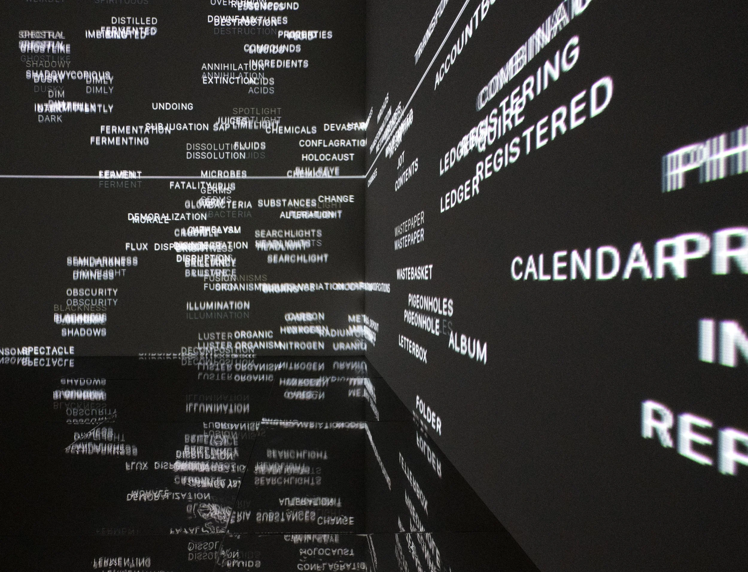 2000 年代後半より幾度となく高谷史郎と作品を作り続けてきた坂本龍一が、初めてダムタイプメンバーとして作品の制作に関わりました。坂本が本作のために新たに制作したサウンドトラックに加え、坂本の呼びかけにより世界各地でフィールドレコーディングされた音が、ダムタイプの視覚言語を通じて、その場に立って各人が耳を澄ませることの意味、機械を通じた知覚のあり方を浮き上がらせます。また 1850 年代の地理の教科書から引用された普遍的な質問のテキストが、独自のレーザー装置で壁に投影されたり、坂本の友人たち(デヴィッド・シルヴィアンやカヒミ・カリィら)による朗読の音声によって周囲を取り囲み、見えるか見えないか聴こえるか聴こえないかの境界線上で表現されます。