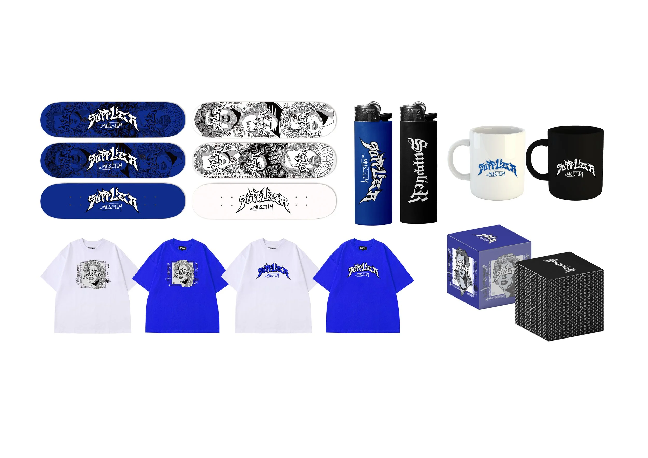 今回のポップアップは”SUPPLIER MUSEUM”と題し、atmosのコンセプトカラーでもある青と白をテーマに設定。テーマカラーのコントラストに囲まれた空間内にデジタルとフィジカルを融合させたSUPPLIERならではの世界観を演出。また空間同様に、青を基調とし落とし込んだPOPUP限定アイテムも展開。ブランド初となるウォーターボトルやマグカップ、スケートボードなどの商品を販売致します。