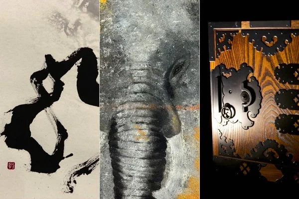 影山潤子(絵画)・加藤渉(船箪笥)・ 橋本敦心(神宿る文字-古代文字、墨象)3名による合同展。異なるアーティスト・作品の背景・文化・歴史・表現方法から、作者の解説・体験をもとに、それぞれの作品の「交差点」を探る展示会です。是非ご高覧くださいませ。