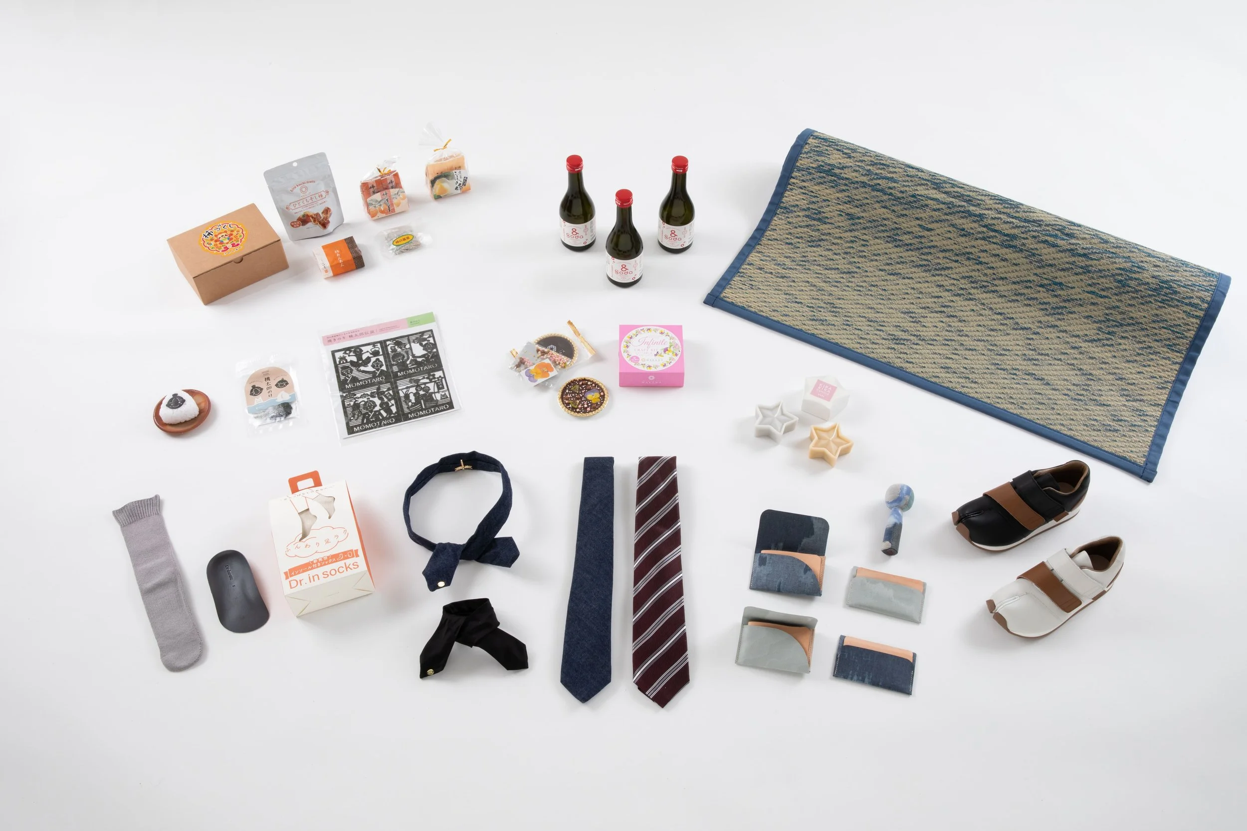 温暖な気候と豊かな自然に恵まれた岡山県内の10事業者とBEAMS JAPANが開発した、デニムの生産地ならではのアイテムや手仕事が感じられる製品、さらには瀬戸内海の凪の海を活かした商品と、既存商品を合わせた全77品目を販売します。帆布、制服の製造業者が多い岡山ならではのネクタイ、ソックス、靴や、環境に配慮するため廃材を固めて作った新素材を活用したコケシなど、岡山のさまざまな魅力を詰め込んだ新たな名産品を展開します。