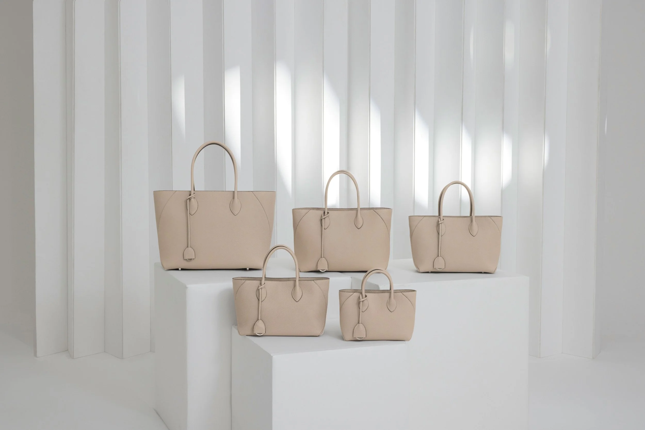 シュリンクレザーの柔らかな風合いを存分に生かしたボナベンチュラのシグネチャーバッグであるミア トートバッグからは既存の22、27、35サイズに加え、新たに30、40サイズが登場。