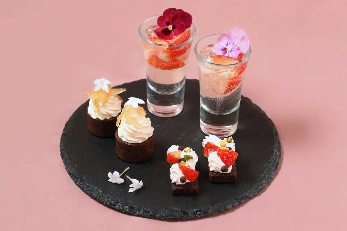 スイーツには、国産いちごの果肉がまるっと入ったスープに、ダークチョコレートのムースを合わせたアシェット・デセール*や、手作りのシャンパンジュレ、手焼きのスコーンやクッキーサンドをご用意しました。また、セイボリー(塩気のある食べ物)には、トリュフ、ローストビーフ、ズワイ蟹と豪華な食材も取り入れ、「お店ならではの特別感」がキーワードとなっています。*アシェット・デセールはフランス語で「皿盛りのデザート」