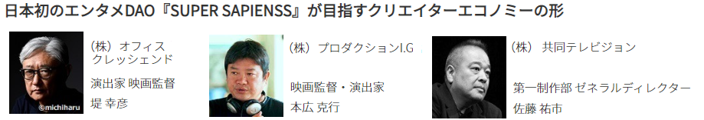 堤 幸彦監督・本広 克行監督らによる「日本初のエンタメDAO『SUPER SAPIENSS』が目指すクリエイターエコノミーの形」他・・・豪華講師陣による充実のセミナー多数開催!