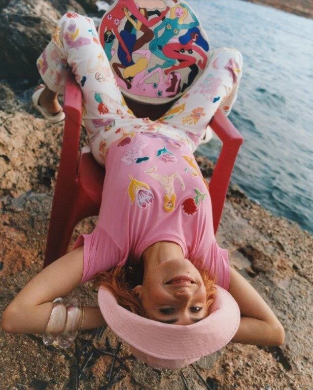 彼女自身が休日に過ごしたイビサ島で、自然と触れ合っている中で受けた刺激的なインスピレーションから生まれた本カプセルコレクションは、特徴的なデザインで描かれた植物や自然の様子と官能的なコラージュと明るい色彩が組み合わさり、性とそれに触れる喜びに対するポジティブな感情を表現しています。また、オーガニックコットンとEcoVeroの生地をメインに使用しており、すでに世界中のファッションアイコン(AMIAYAやアメリカのインフルエンサーCourtney Trop (@alwaysjudging) など)も着用している、ハッピーでポジティブな本コレクションを実際に手に取ってご覧頂ける関西で初めての機会です。