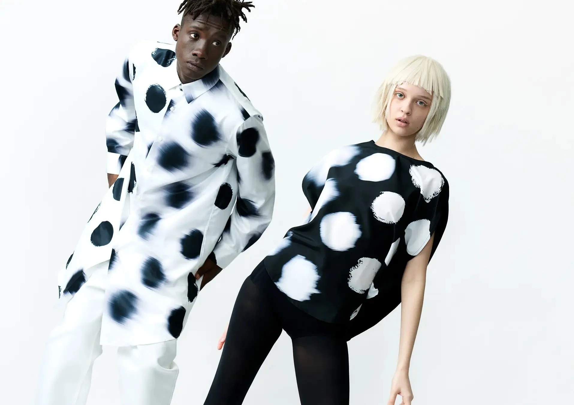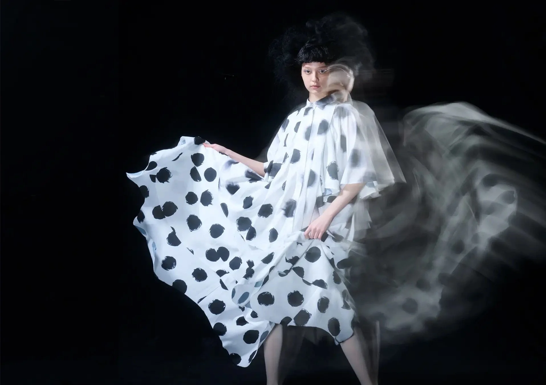 今回のコレクションでは「Unclear(曖昧)」をテーマに、新しいドットファッションを提案。不確かなものが残す強烈な印象。輪郭がぼやけてしまい不確かで曖昧な存在となったドットと、輪郭がくっきりと見える確かな存在のドットを共存させるグラフィックで、より強い存在感を持つ、新しいドット柄が誕生しました。
