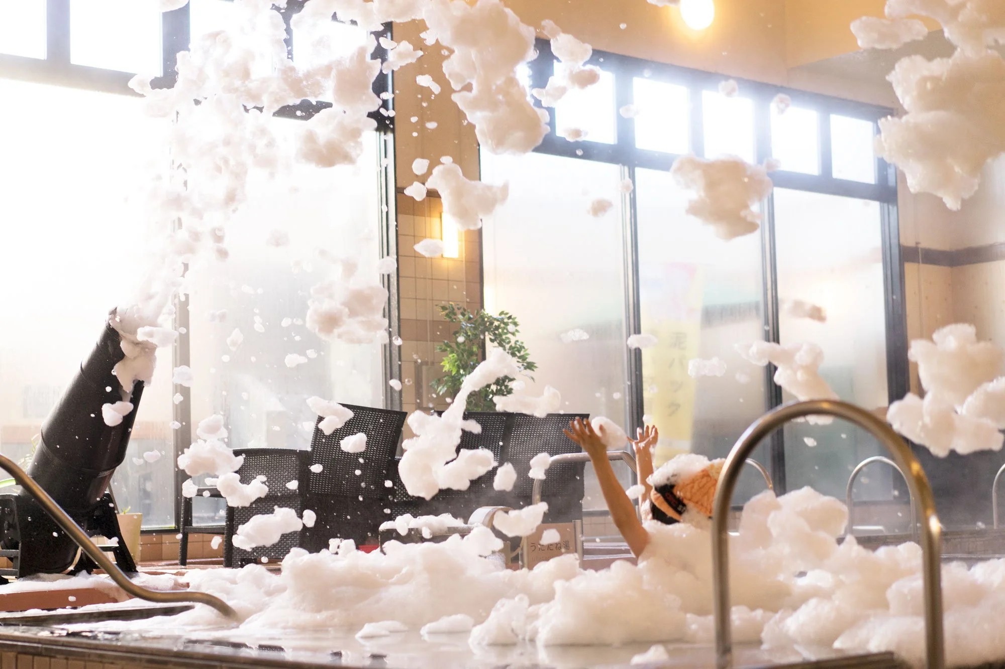 大量に放出されるカラフルな泡を全身で浴びる体験を味わえる「カラフル泡パーティー」の後は、火照った身体に染み渡るアイスクリームを男女浴室内にて販売・提供します。