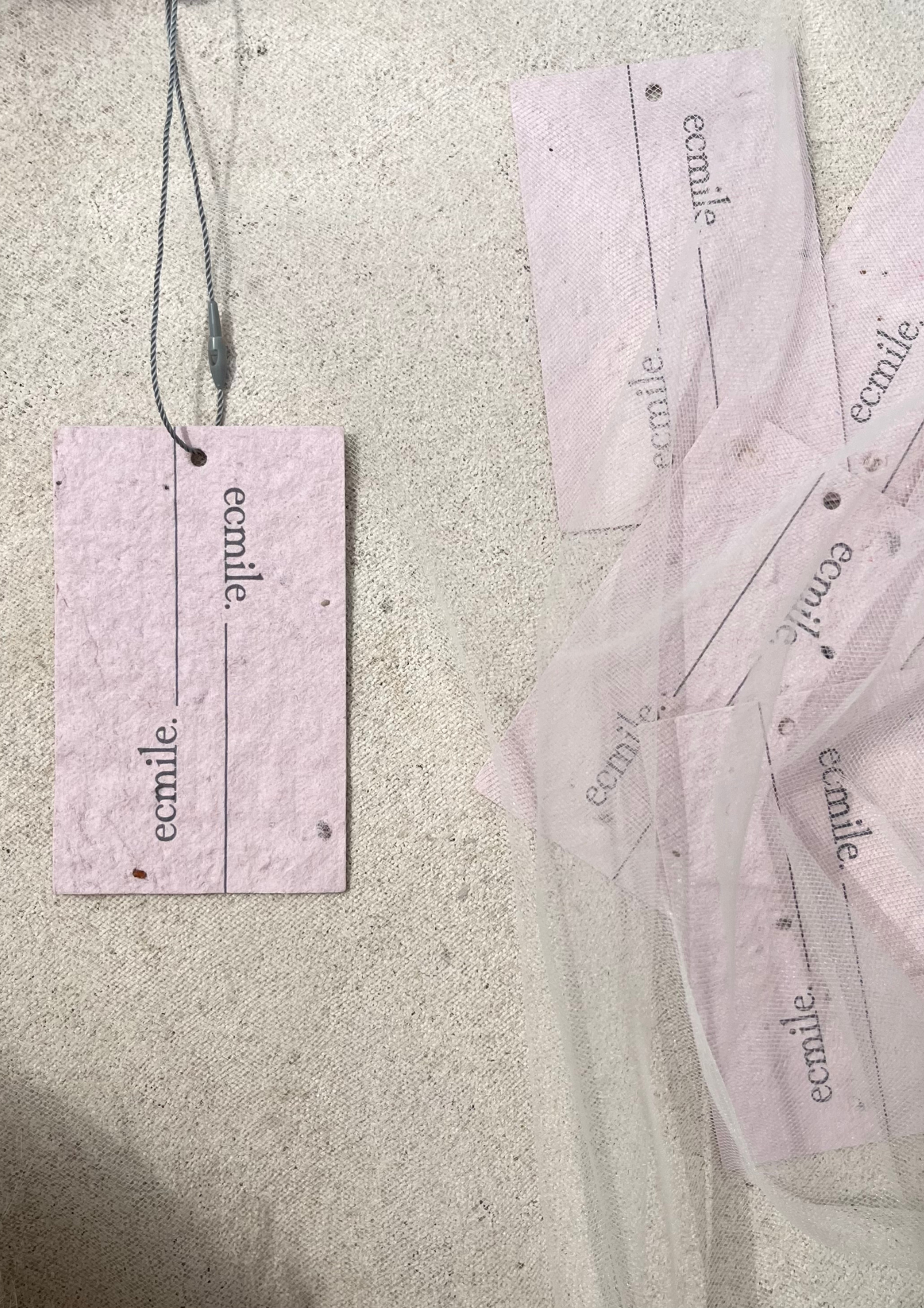 ecmile.のプライスタグには、さまざまな花の種を漉きこんだシードペーパーを使用することで、