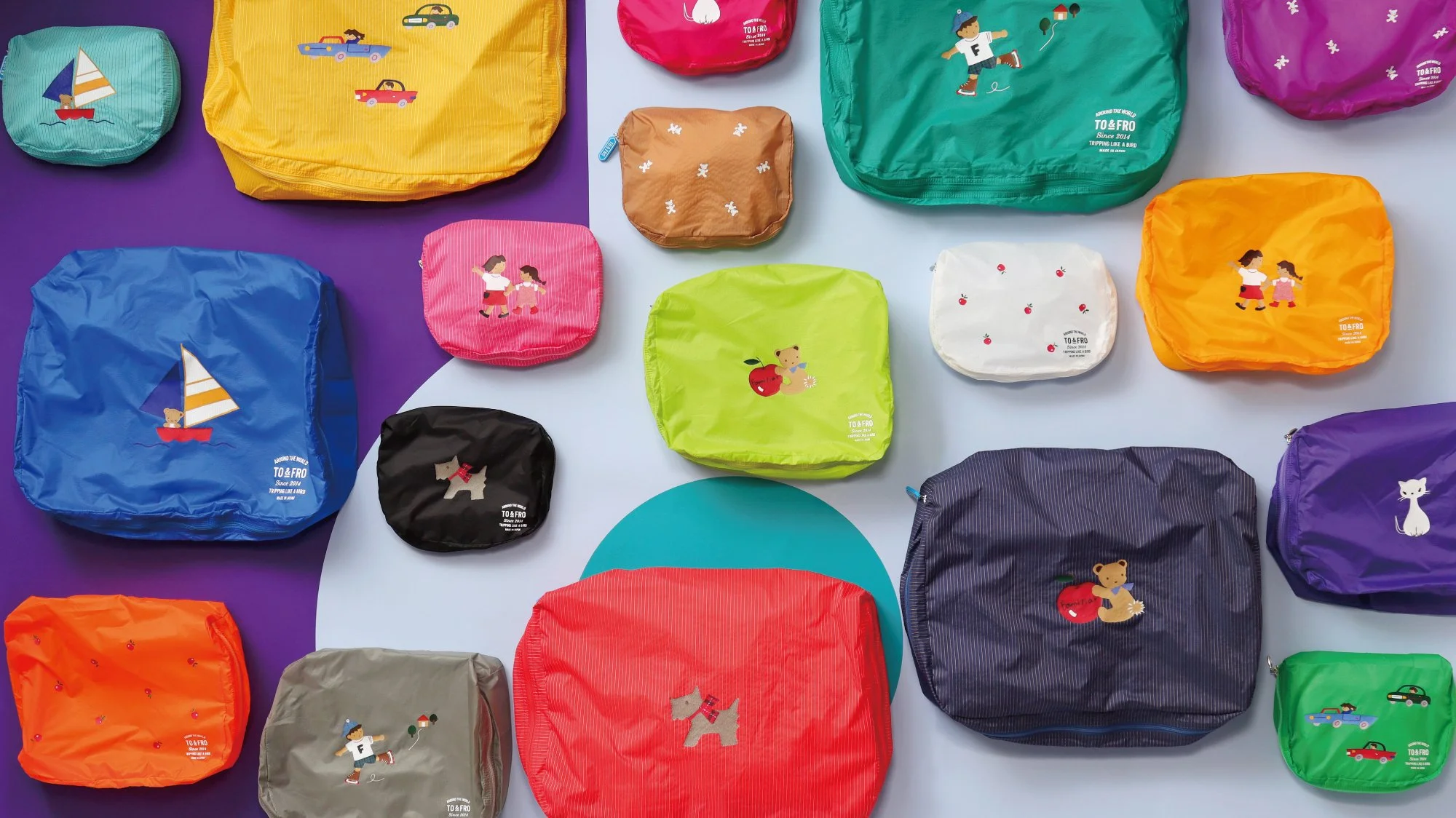ファミリアのお洋服など、ものづくりの過程で生まれる生地の残反を使ったバッグや巾着が新たに登場。「familiar」のロゴやクマちゃん・テリアなど、ファミリアらしいワンポイントがプリントされた、シンプルでデイリー使いしやすいアイテムです。テープや紐のカラフルな配色もポイント。