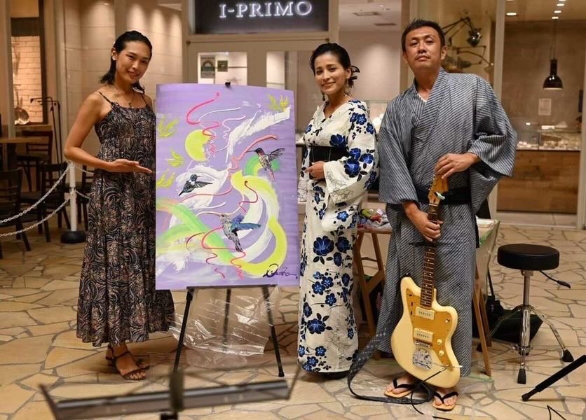 編集部は、早速8/21(日)に行われたイベントに伺いました!武元狩さんの素敵な音色のギターを聴きながら、渡邉絵理さんの引き込まれるような朗読と共に稲葉怜さんの華麗なライブペイントが行われていました。観客の皆さんは、時間を忘れてしまうほどライブパフォーマンスに夢中になって鑑賞されていました。