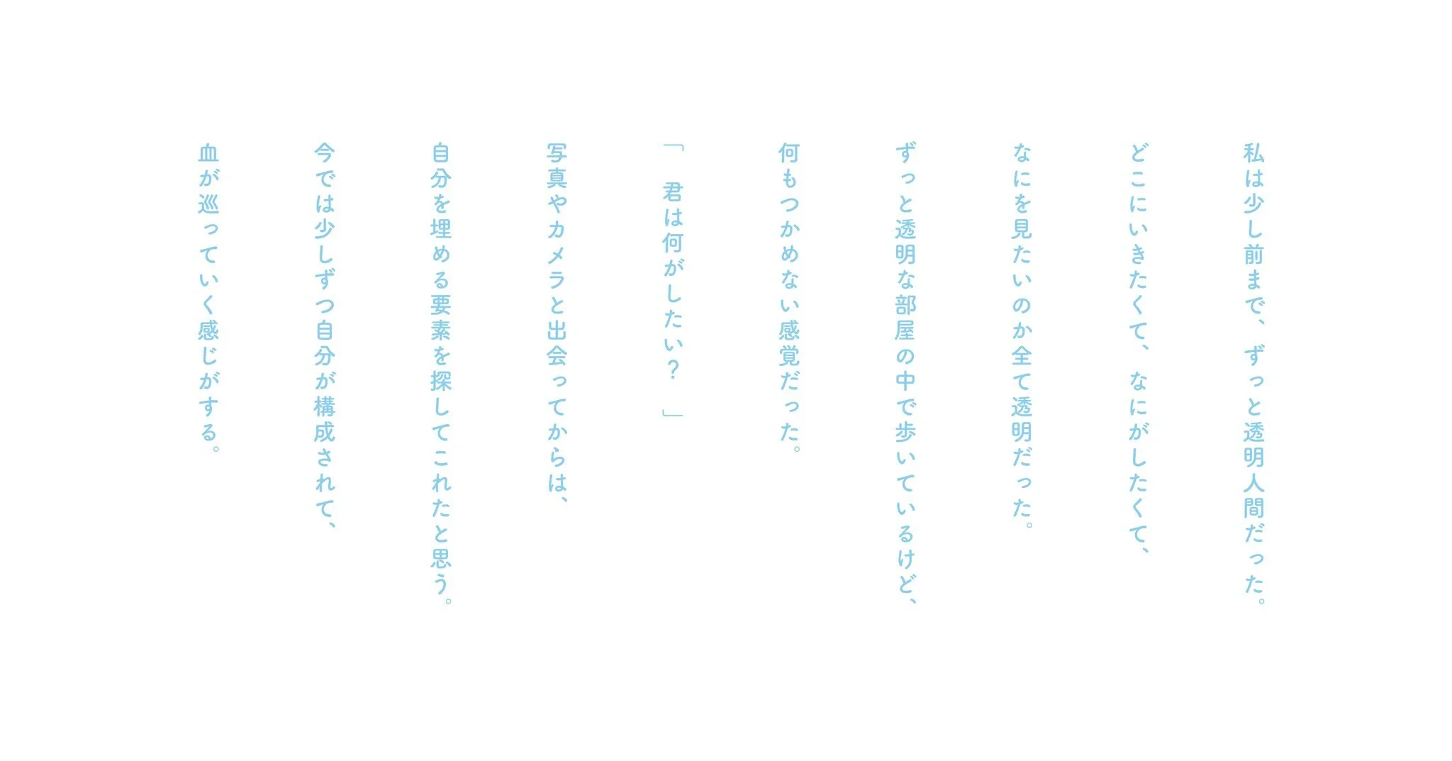 この度、フォトグラファー・Fujikawa hinanoは、個展『Everything Everywhere』(エブリシング・エブリウェア)を開催いたします。毎年展示は実施していましたが、初めての個展ということでドキドキしております。会期中は毎日在廊しますので、是非ふらっときていただけますと幸いです。
