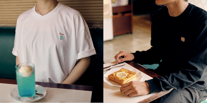 このたび開催中のポップアップイベント『ワンモア×福助』で展開するのは、東京都江戸川区平井にある純喫茶の名店「珈琲ワンモア」と当社が協業した靴下やウエア、雑貨の「ワンモア×福助」。「珈琲ワンモア」を代表する人気メニューより薄切りレモンをのせたフレンチトースト、鮮やかなブルーが眩しいクリームソーダ、銅板で焼く名物ホットケーキなどをモチーフに落とし込んだデザインで、どこか懐かしくほっこりと心が温まる商品です。