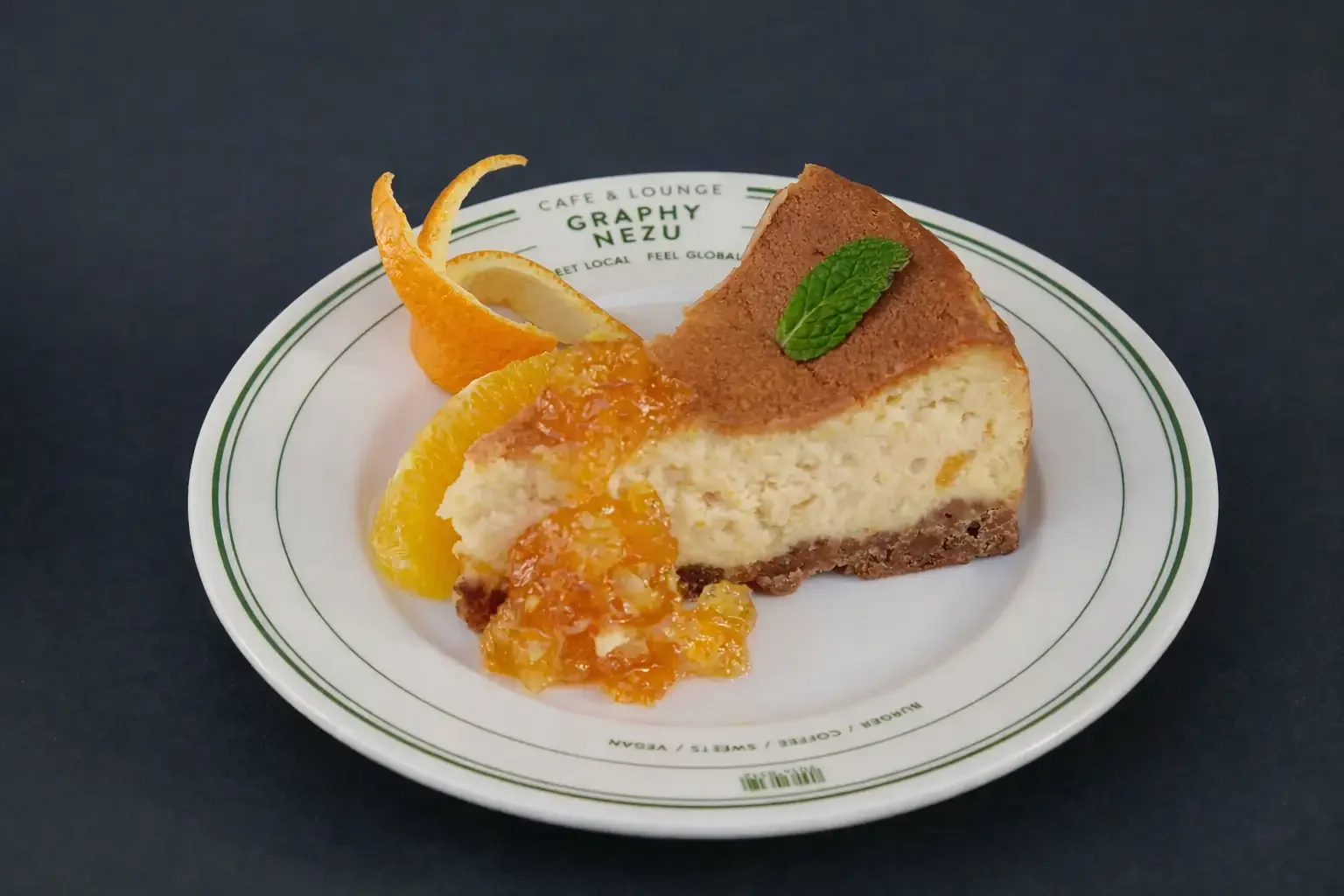 甘夏チーズケーキ:チーズのコクに甘夏の果実のさっぱりとした味をブレンド、そこにアペロールを加えることでまろやかな仕上がりとなった1品。