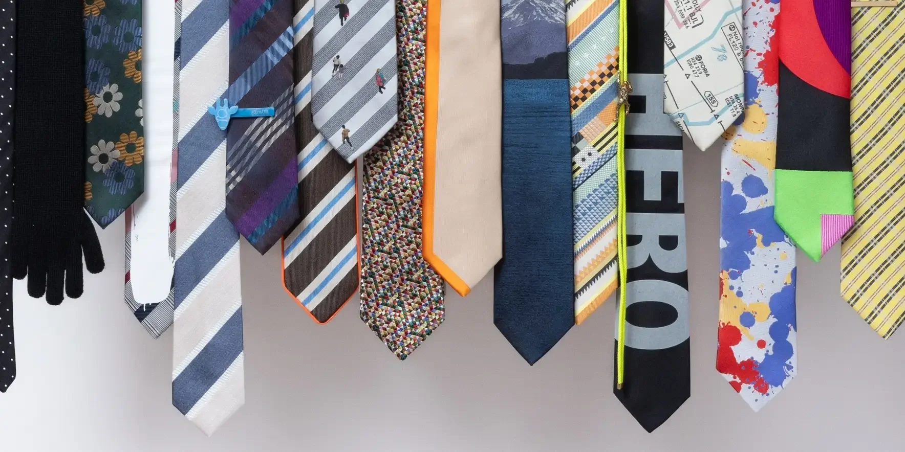 giraffe のアイコニックな展示スタイル(通称:ナイアガラ)で、時代は変われど冷めることのないネクタイ愛を表現しています。