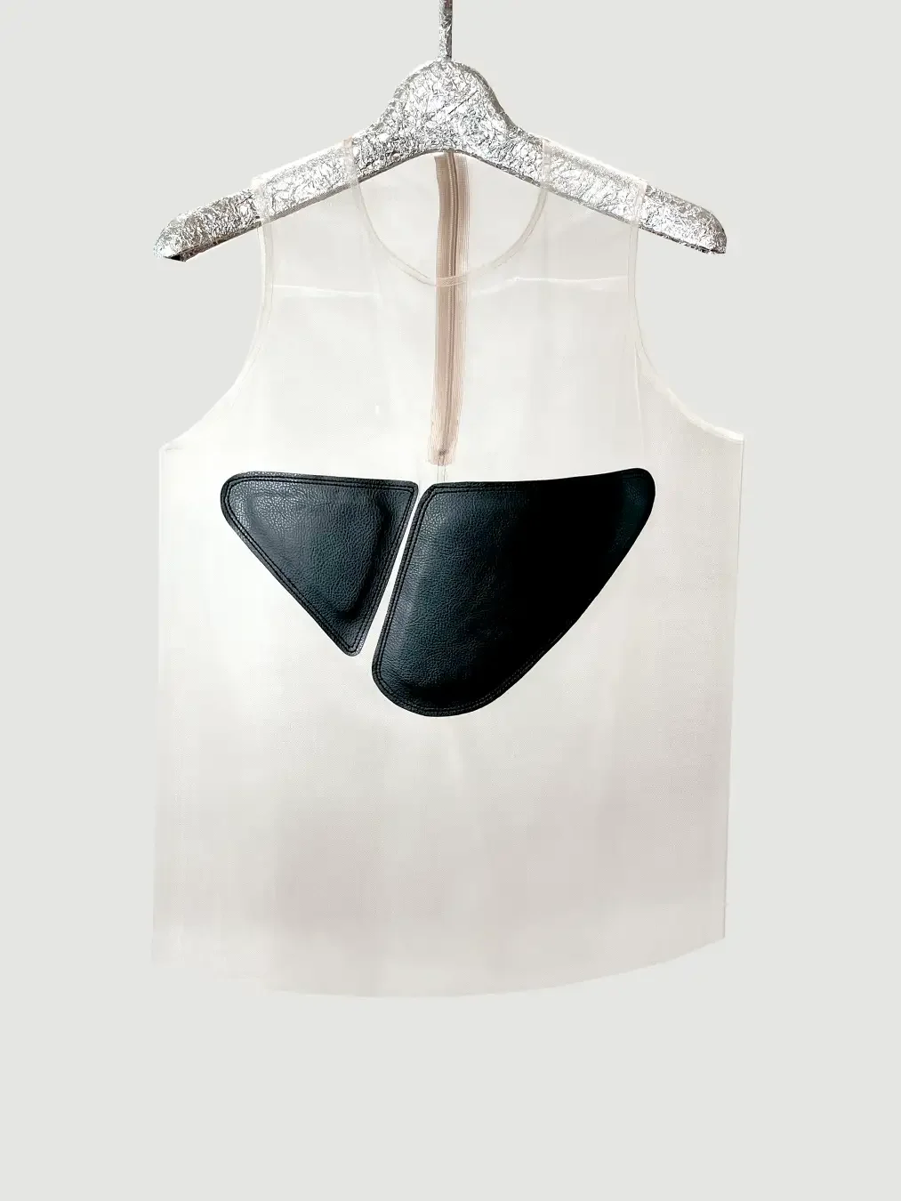 彫刻家アレクサンダー・カルダーの「動く彫刻・モビール」が着想源。GURTWEINの軸となっている高度なヨーロッパスタイルのテーラリングをベースに、軽さと透け感、空気のような軽快なラッフル、比重の異なる素材の組み合わせを織り交ぜています。所作によって表情を変えるシルエットなど、洋服を着る楽しさや高揚感を引き立てます。