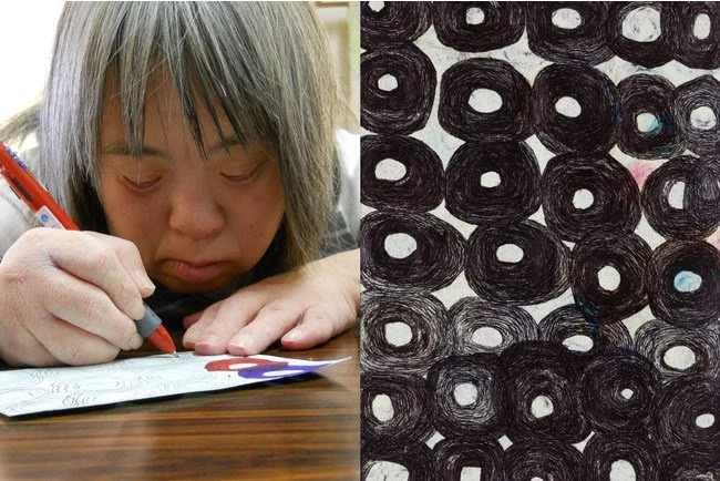 絵画のみならず織り物、 切り紙、 刺繍など、 いずれも緻密で色彩と構成の妙に富む様々な表現を生み出し続けている。 彼女は一つの仕事に数か月から数年集中して取り組んだあと、 不意にやめて別の仕事に移るのが常。 2019年現在の彼女が打ち込んでいるのは、 丸く切り抜いた紙をいくつもの色で同心円状に彩色し、 塗り終わった紙を壁に並べて貼っていくこと。