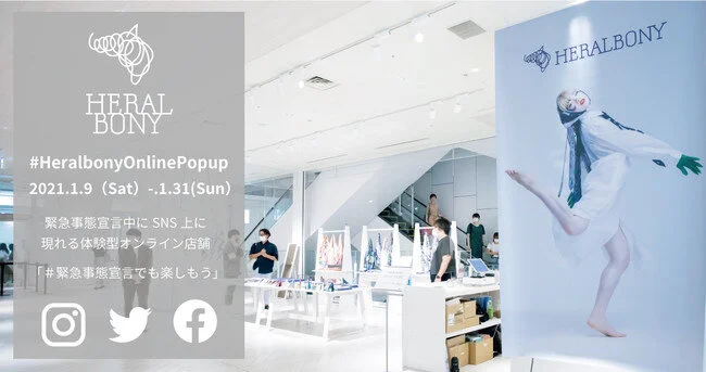 そこで、SNS上で大きなムーブメントとなっているハッシュタグ「#緊急事態宣言でも楽しもう」に賛同し、自宅に居ながら美術鑑賞及びショッピングを楽しむことができる体験型オンライン店舗「#HeralbonyOnlinePopup」を出店することを企画いたしました。「#おうち時間」を楽しく彩る、ウィズ・コロナのニューノーマル時代に向けた新しい店舗の形です。