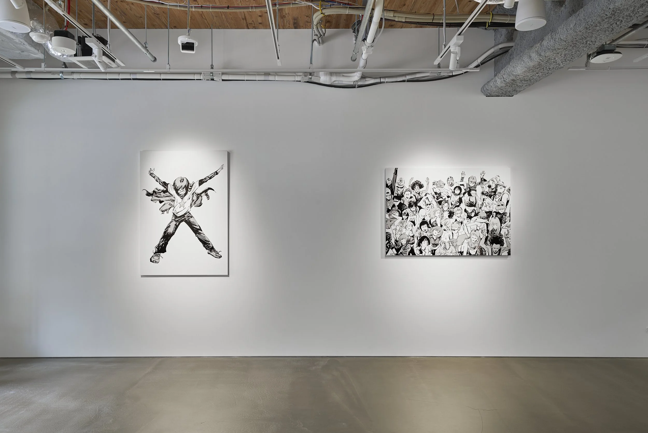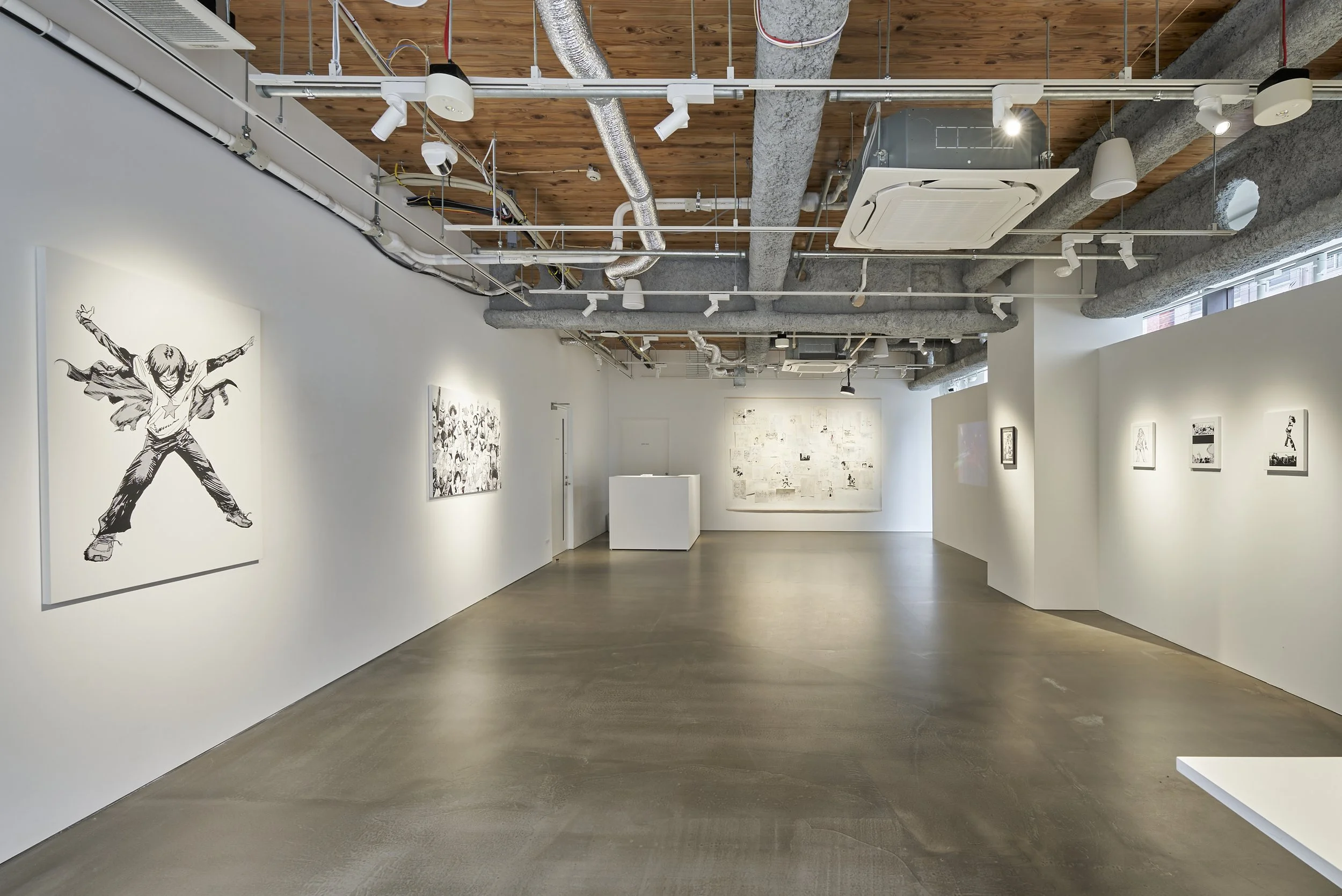 本展では、これまでの代表作に加え、新たな挑戦となる新作群を発表。アニメや漫画の影響を感じさせるイラストレーション、絵画作品、さらには音楽やスケートカルチャーとの親和性を感じさせるインスタレーション作品など、多岐にわたるメディアで構成されています。また、アーティストが長年追求してきた「リアルとフィクションの狭間」にある存在をテーマに、これまでよりも深いレイヤーに踏み込んだ作品群が並びます。
