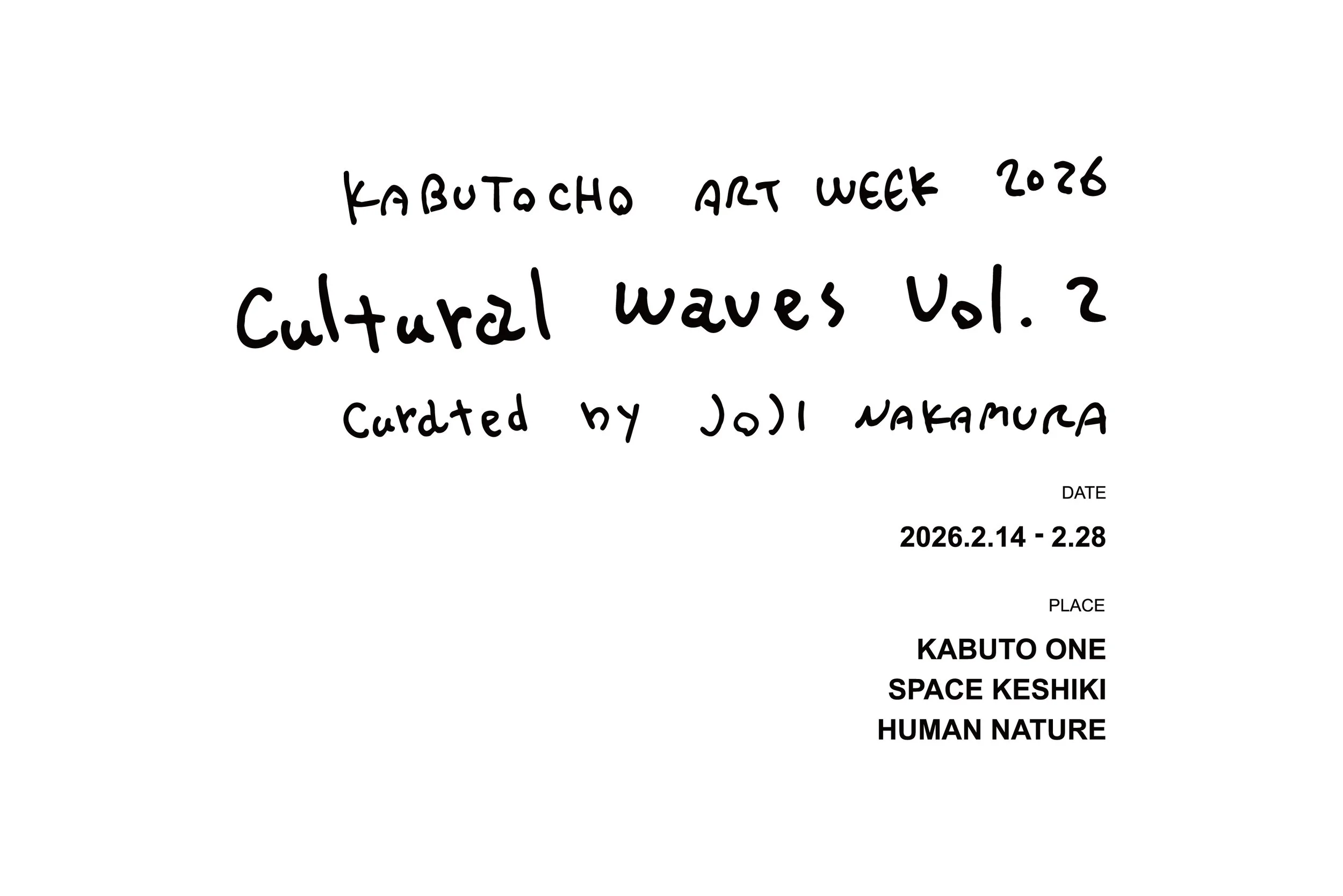 日本橋兜町を舞台にしたアートを中心とする回遊型エキシビション “Kabutocho Art Week 2026 -Cultural Waves.vol.2-” 。アートや音楽、食など様々な文化的要素が押し寄せ、混ざる交流を求め、新たな価値観の気づきや創造を主眼とし、第2回は画家・JOJI NAKAMURAがメインキュレーターとなり、交友のあるアーティスト総勢23名の作品が参集します。