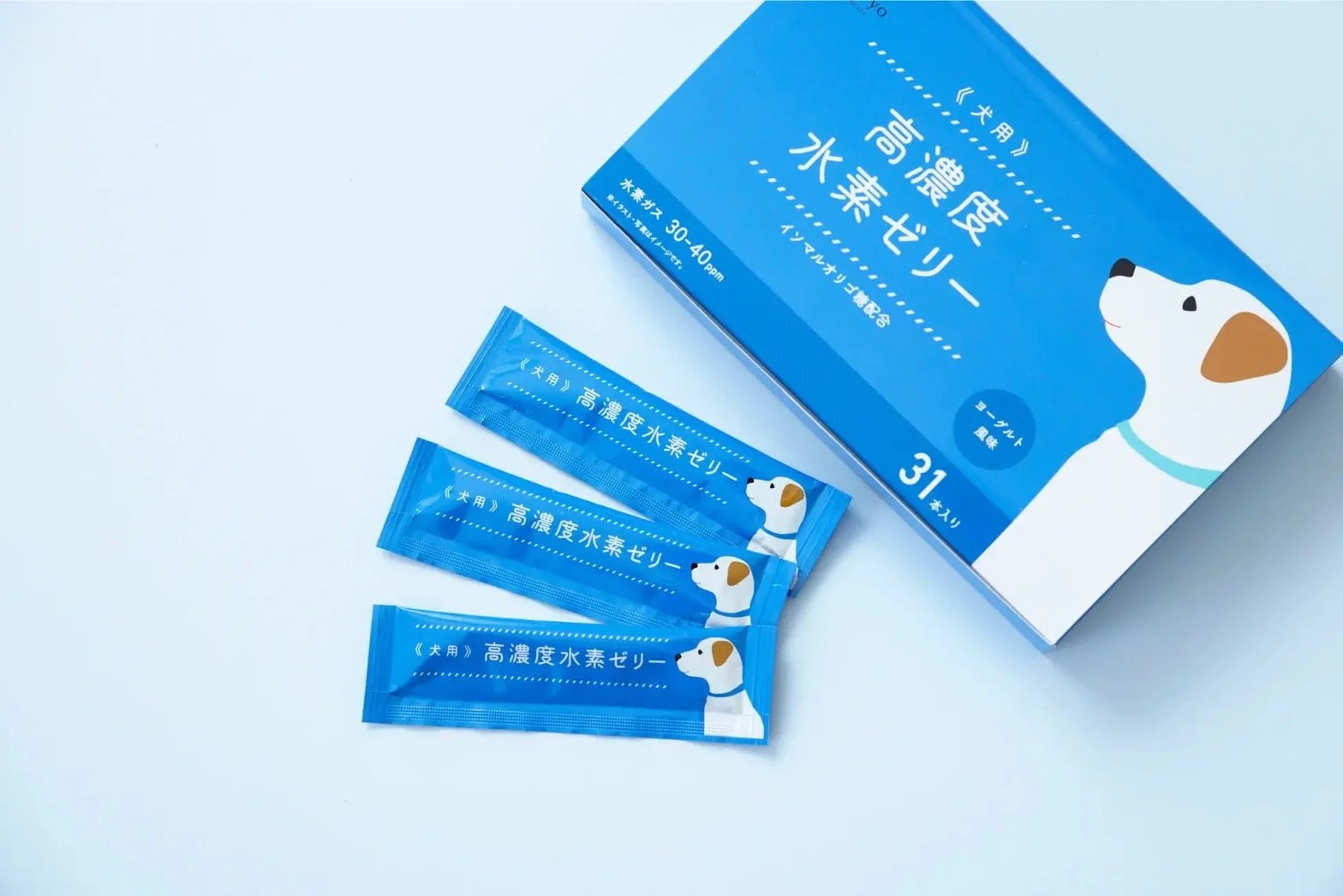 先日朝の情報番組でも紹介された、シルバーのパッケージが目を惹く「高濃度水素ゼリーアスリート」、動物性原料不使用の「高濃度水素ゼリーVege」、コラーゲンやアスタキサンチンを配合した「高濃度水素ゼリー美容タイプ」、愛犬の健康を気遣う方向けの「高濃度水素ゼリー犬用」もラインナップしています。