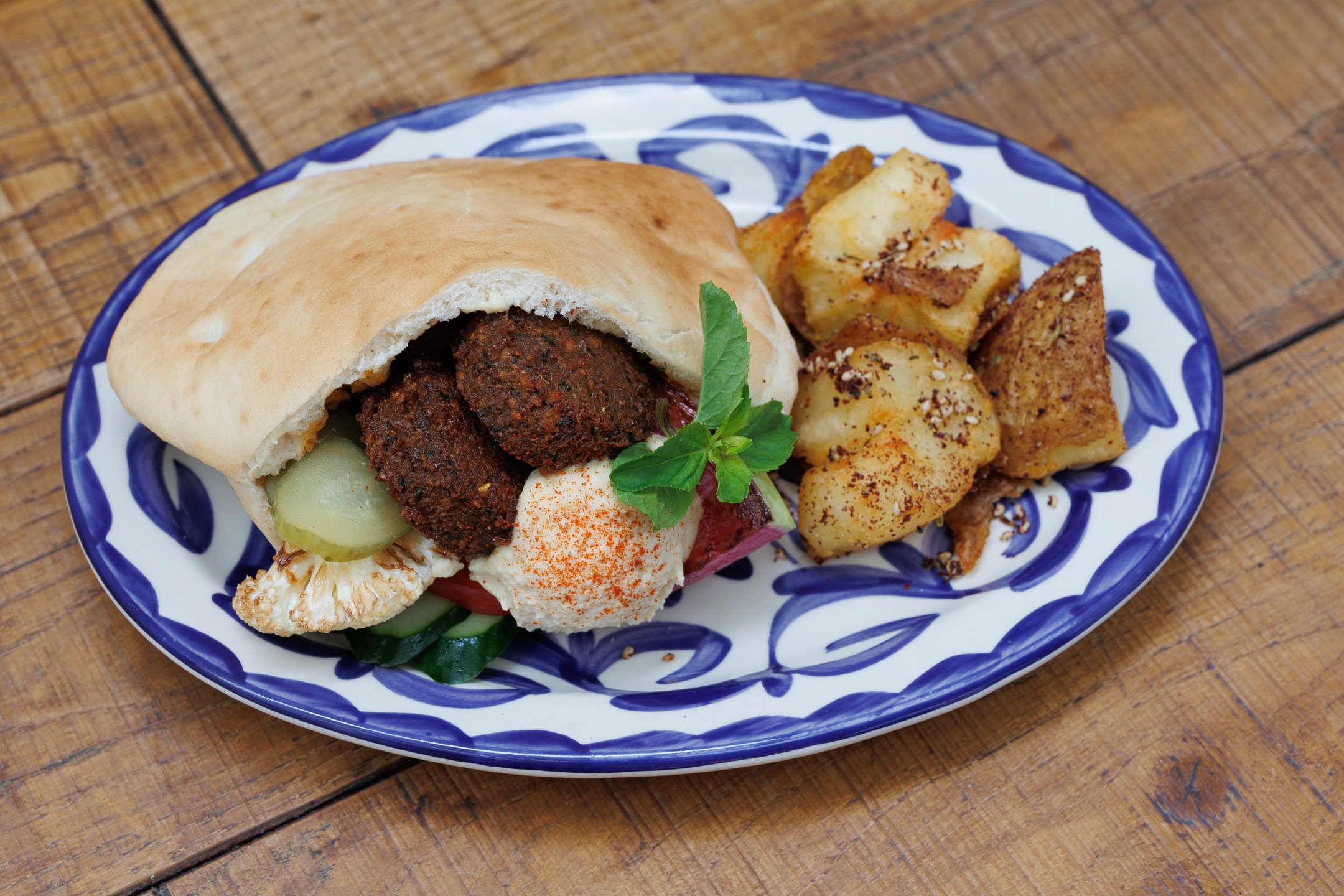 ファラフェルピタサンドとフライドポテトザアタル風味のセット