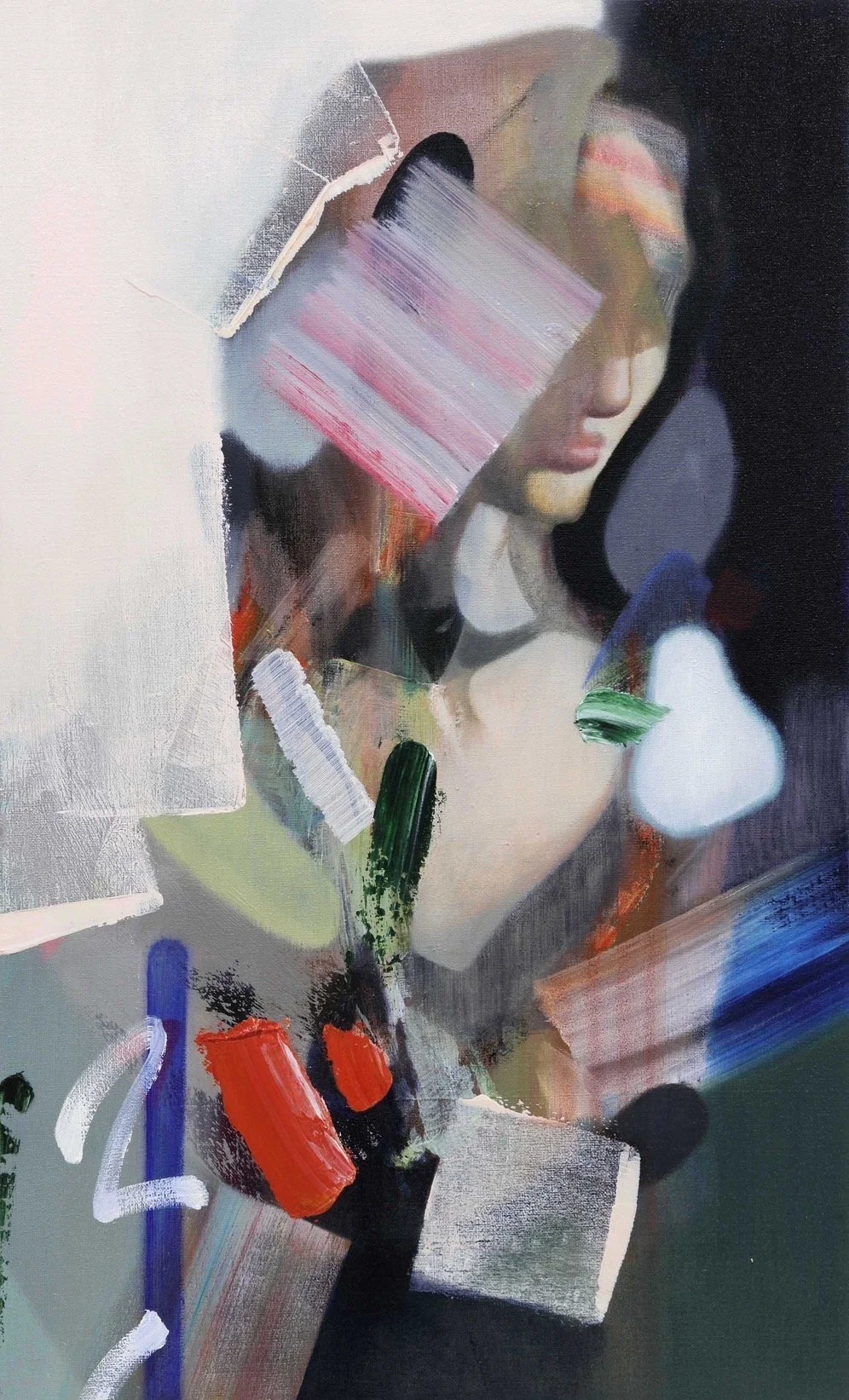 顔の一部を隠すことで、感覚から得られる情報源を断ち、他者の感情や人格を想察し、自分自身が何者で何を目的に生きているのかを見つめ直し、偏見や圧力からの脱却と自らの物差しで物事を捉えることの肝要さを 鑑賞者に示唆している。