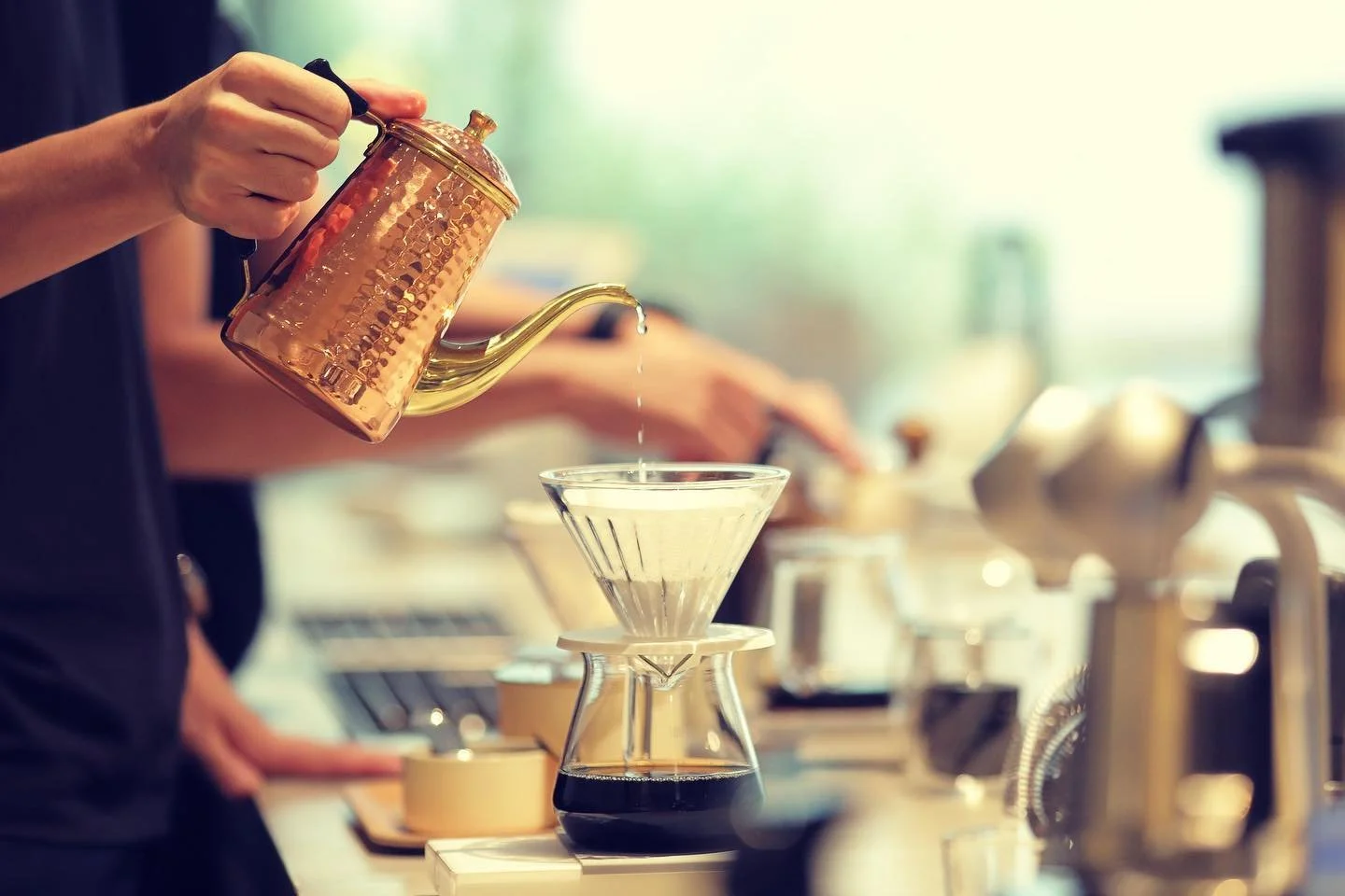 予約不要でお越しいただける〈オープンルーム〉には、ハンドドリップマイスターによる特製の「レインドロップコーヒー(ぽたぽたと雫のように抽出した液を希釈して飲むコーヒー)」をご用意。豆の甘みを感じる雑味のない味わいを、お好きなソファやチェアでくつろぎながらお楽しみください。美味しいコーヒーの淹れ方や豆選びなどのご質問もマイスターまでお気軽にどうぞ。