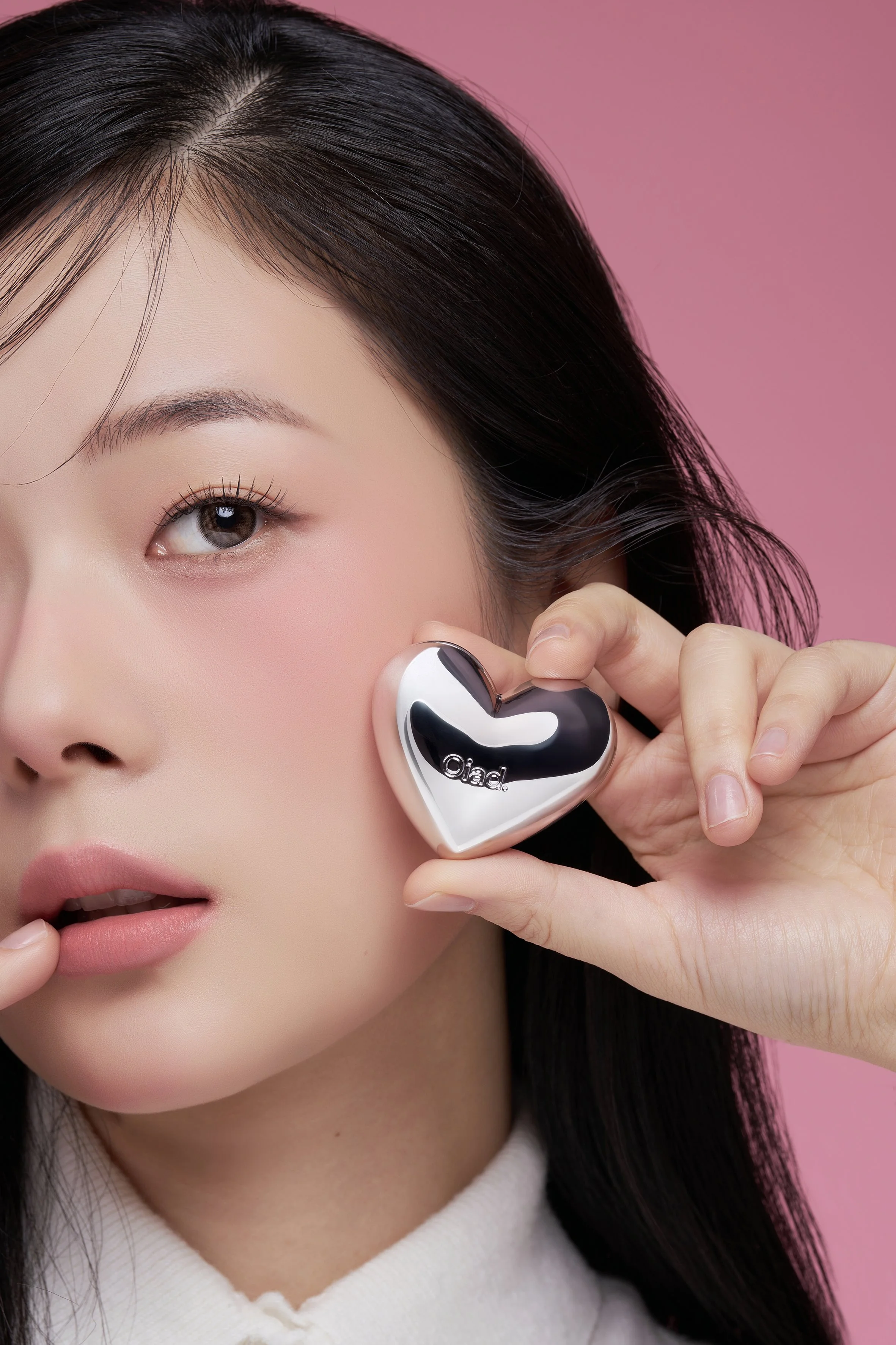 ハート型のムースクリームリップ&チーク。肌にのせると鮮やかに発色し、指やパフで伸ばすことでふんわりとしたマットな仕上がりに。