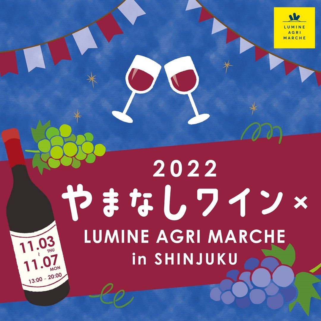 株式会社ルミネは、昨年に続いて第2弾となる「やまなしワインマルシェ」を11月3日(木・祝)から11月7日(月)までの5日間開催いたします。