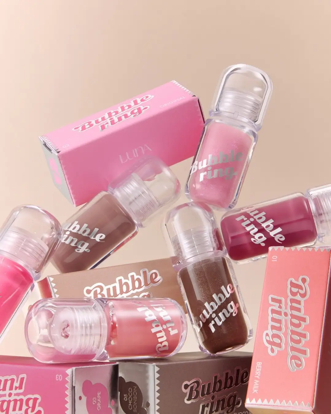 フーセンガムをモチーフにしたスウィートなカラー展開で、季節や好みに合わせた色選びが可能。さらに、複数のカラーを重ねることもでき、自分だけのオリジナルカラーでリップメイクを楽しめます。飲んでも食べても落ちにくいロングラスティングタイプのグロスです。
